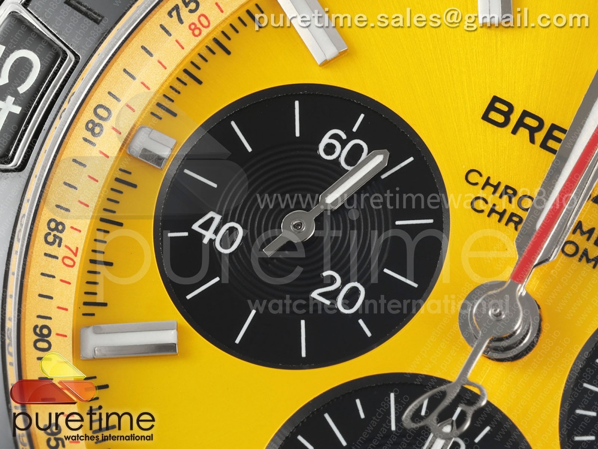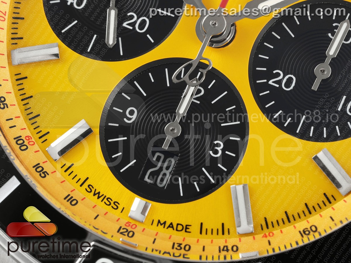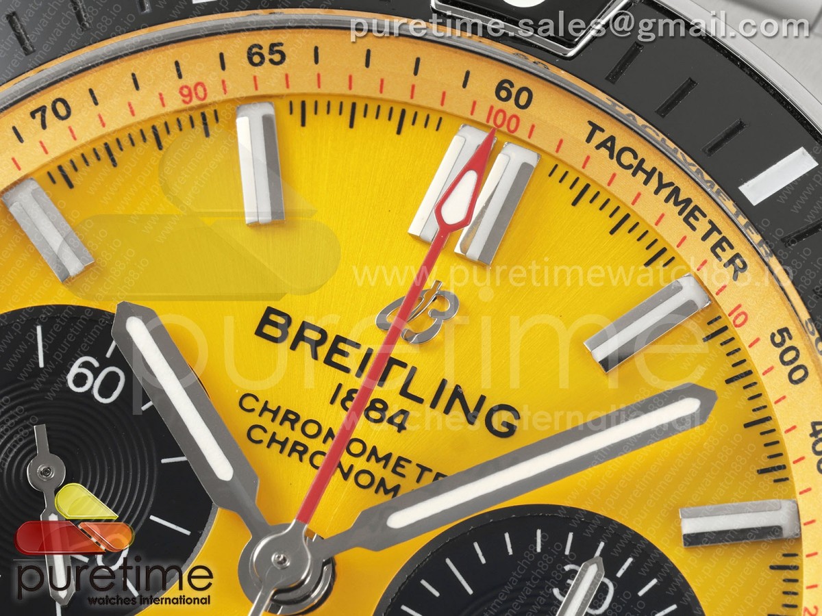 • TF 브라이틀링 슈퍼 크로노맷 B01 44미리 옐로우다이얼 스틸브레이슬릿 Super Chronomat B01 44 SS TF 1:1 Best Edition Yellow Dial on SS Bracelet A7750