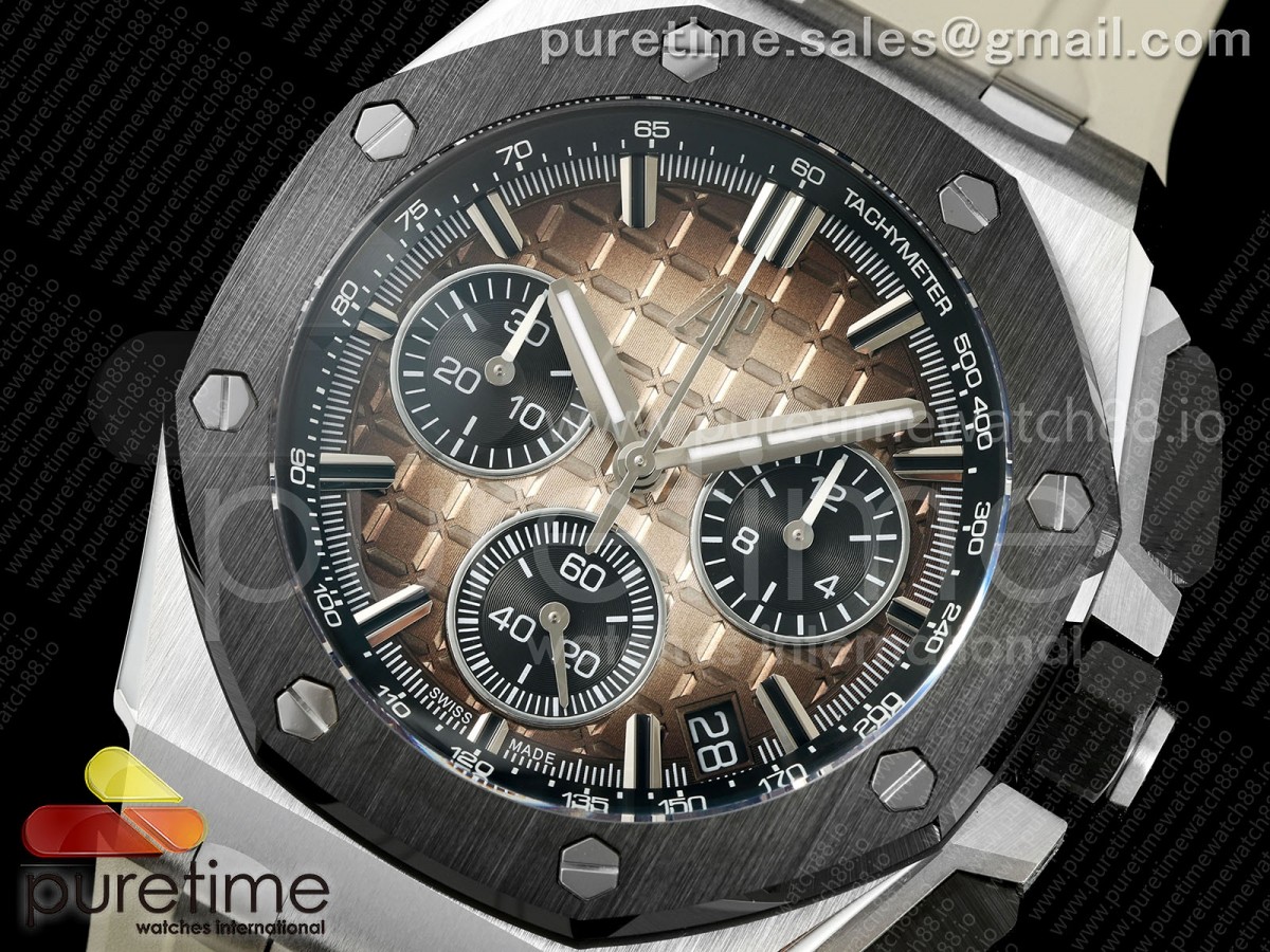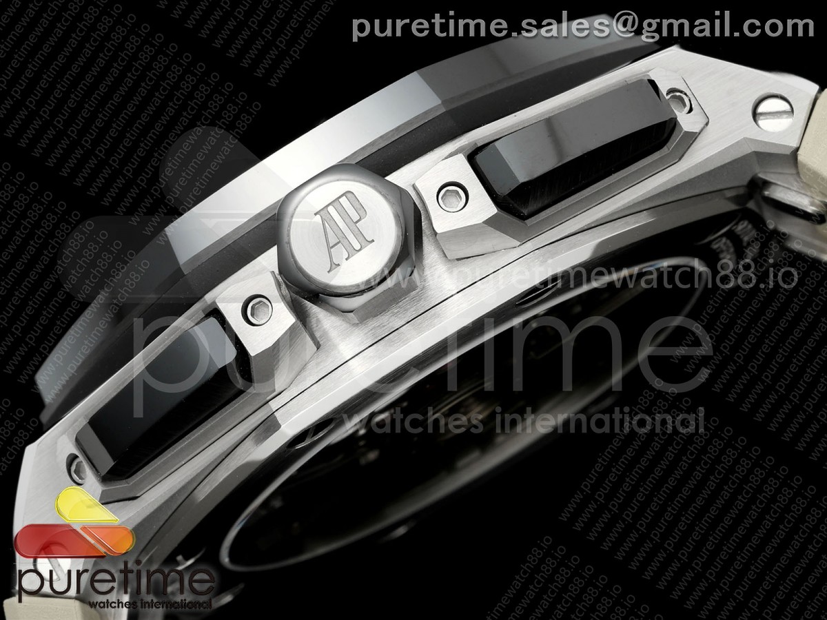 • APSF 오데마피게 로얄오크 오프쇼어 26420 스모크다이얼 그레이러버스트랩 Royal Oak Offshore 26420 SS Ceramic Bezel APSF 1:1 Best Edition Smoked Dial on Gray Rubber Strap SA4401 Super Clone