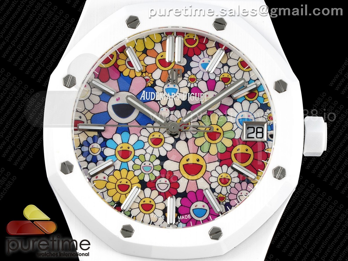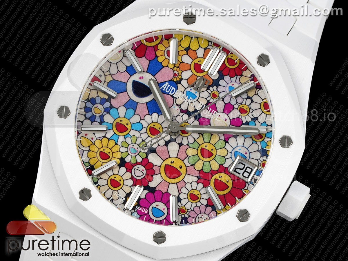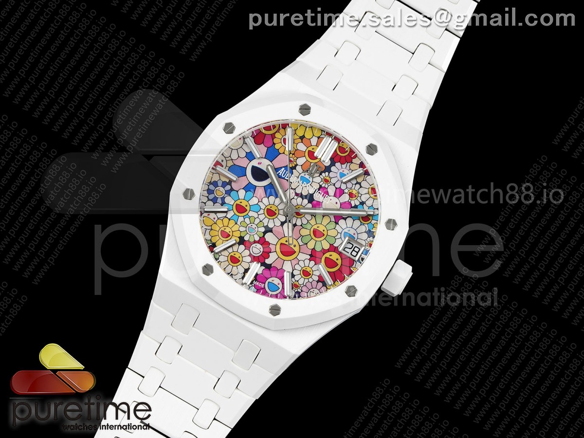 • APSF 오데마피게 로얄오크 15500 무라카미 다카시 화이트세라믹 세라믹브레이슬릿 Royal Oak 15500 White Ceramic APSF 1:1 Best Edition Takashi Murakami SA4302 Super Clone