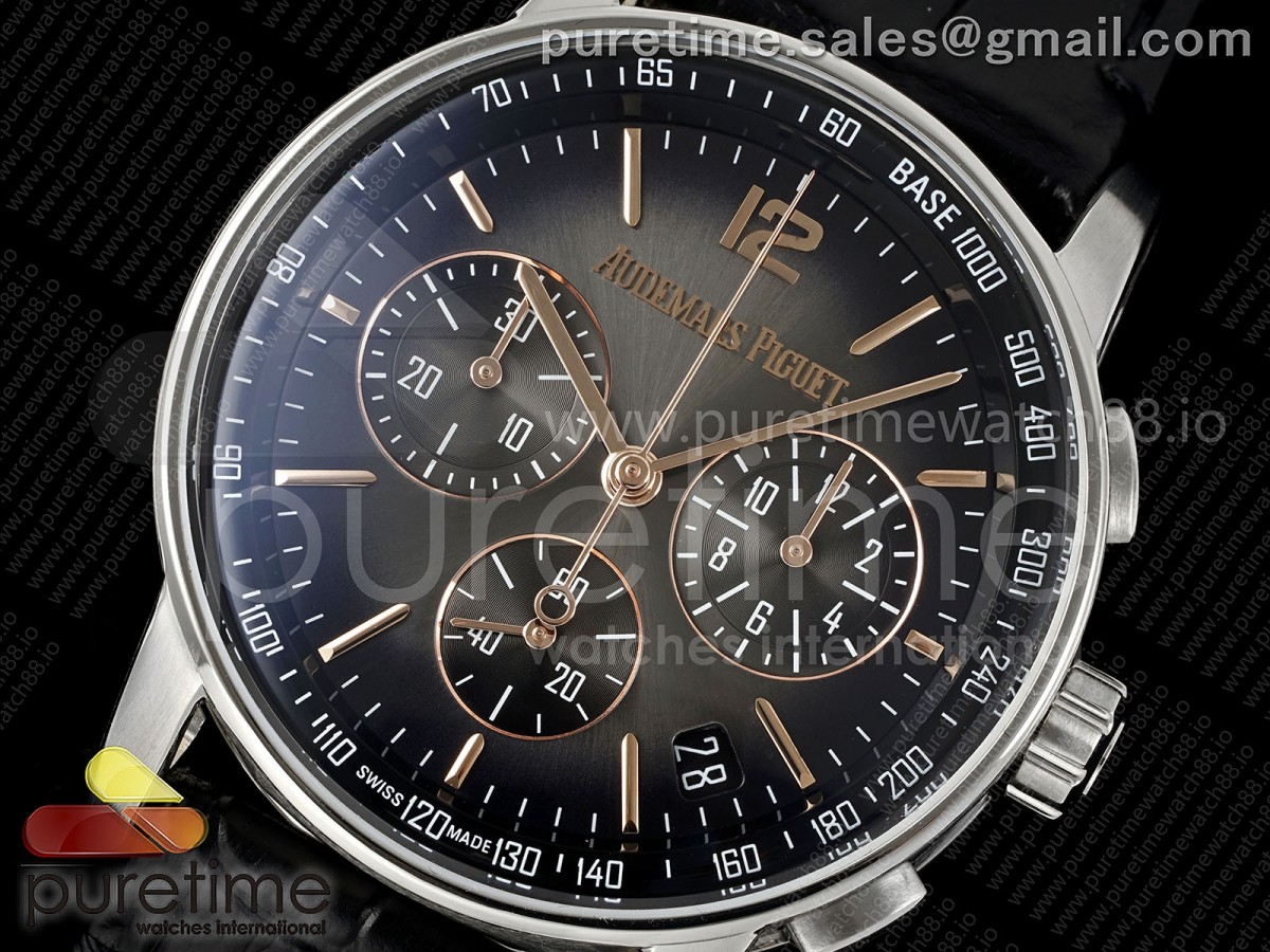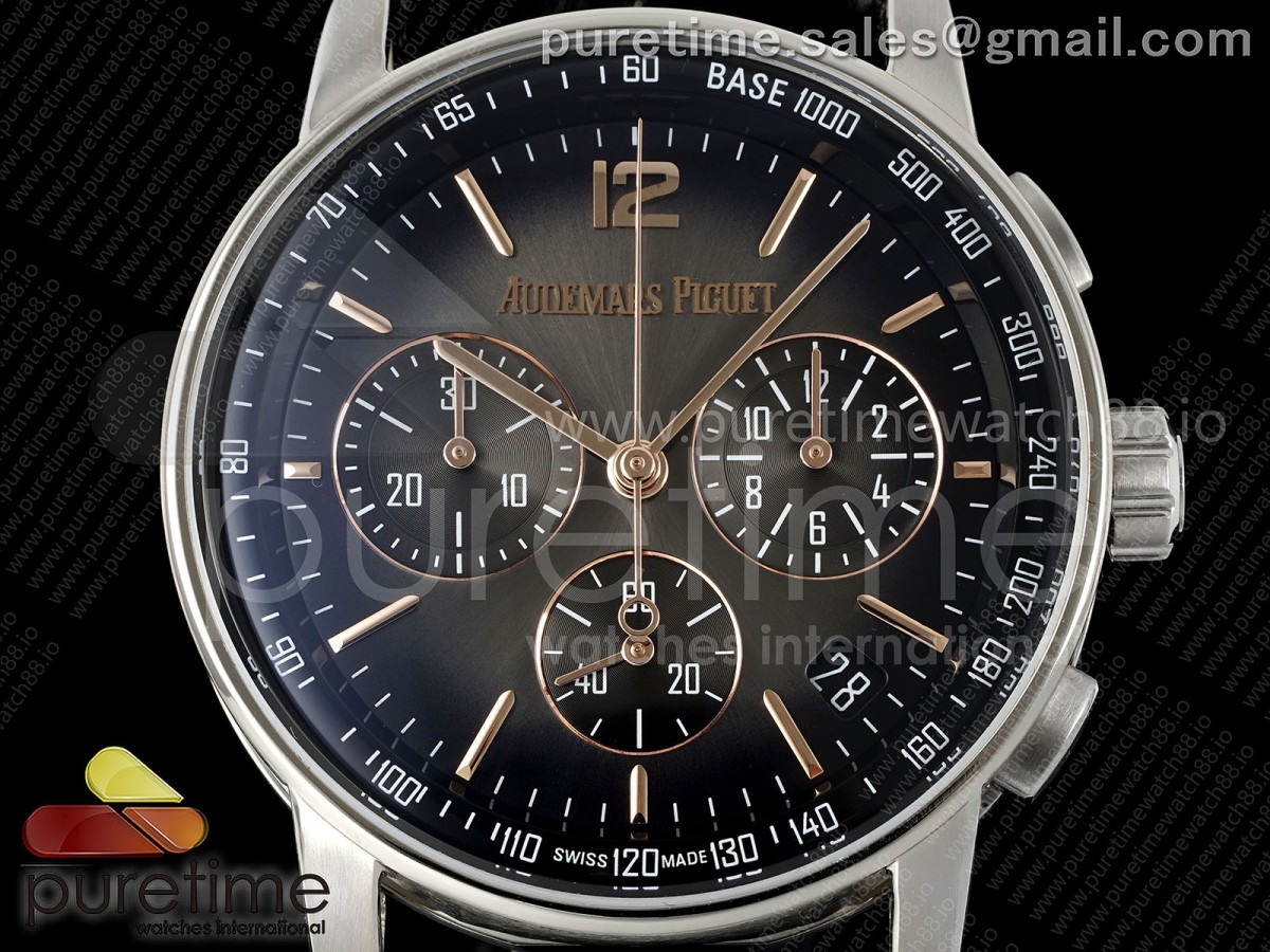 • APSF 오데마피게 코드11.59 크로노 26393 그레이/블랙다이얼 블랙가죽스트랩 Code 11.59 Chrono 26393 SS APSF 1:1 Best Edition Gray/Black Dial on Black Leather Strap SA4401 Super Clone