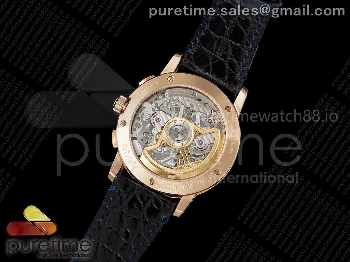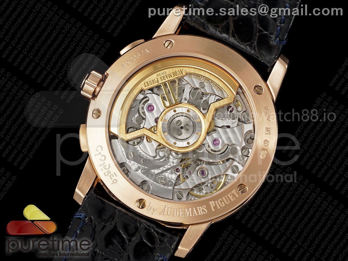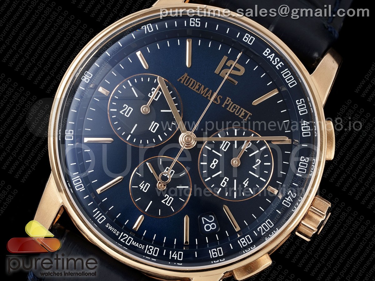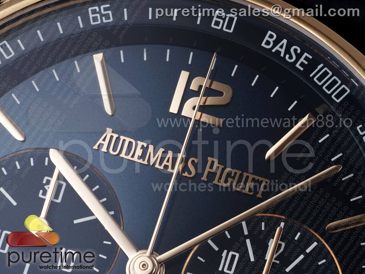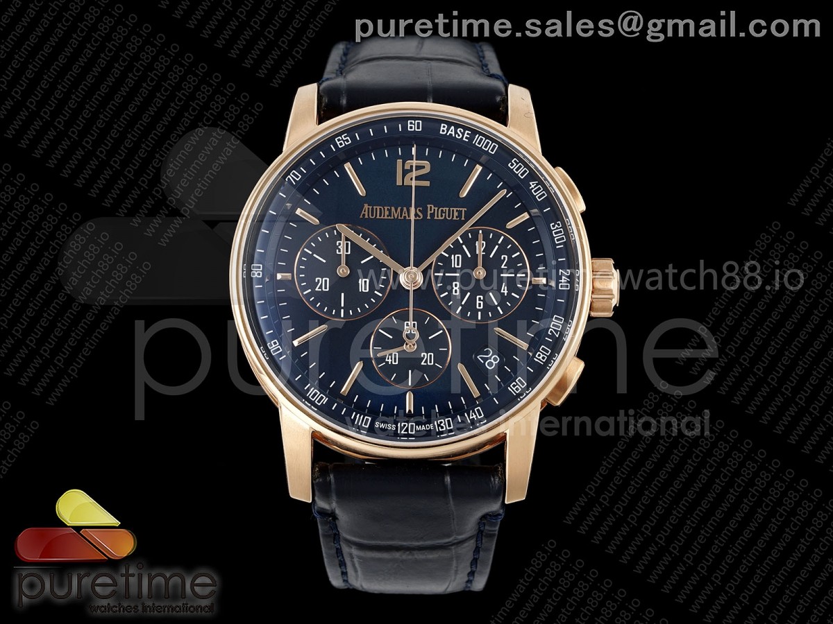 • APSF 오데마피게 코드11.59 크로노 로즈골드 26393 블루다이얼 블루가죽스트랩 Code 11.59 Chrono 26393 RG APSF 1:1 Best Edition Blue Dial on Blue Leather Strap SA4401 Super Clone