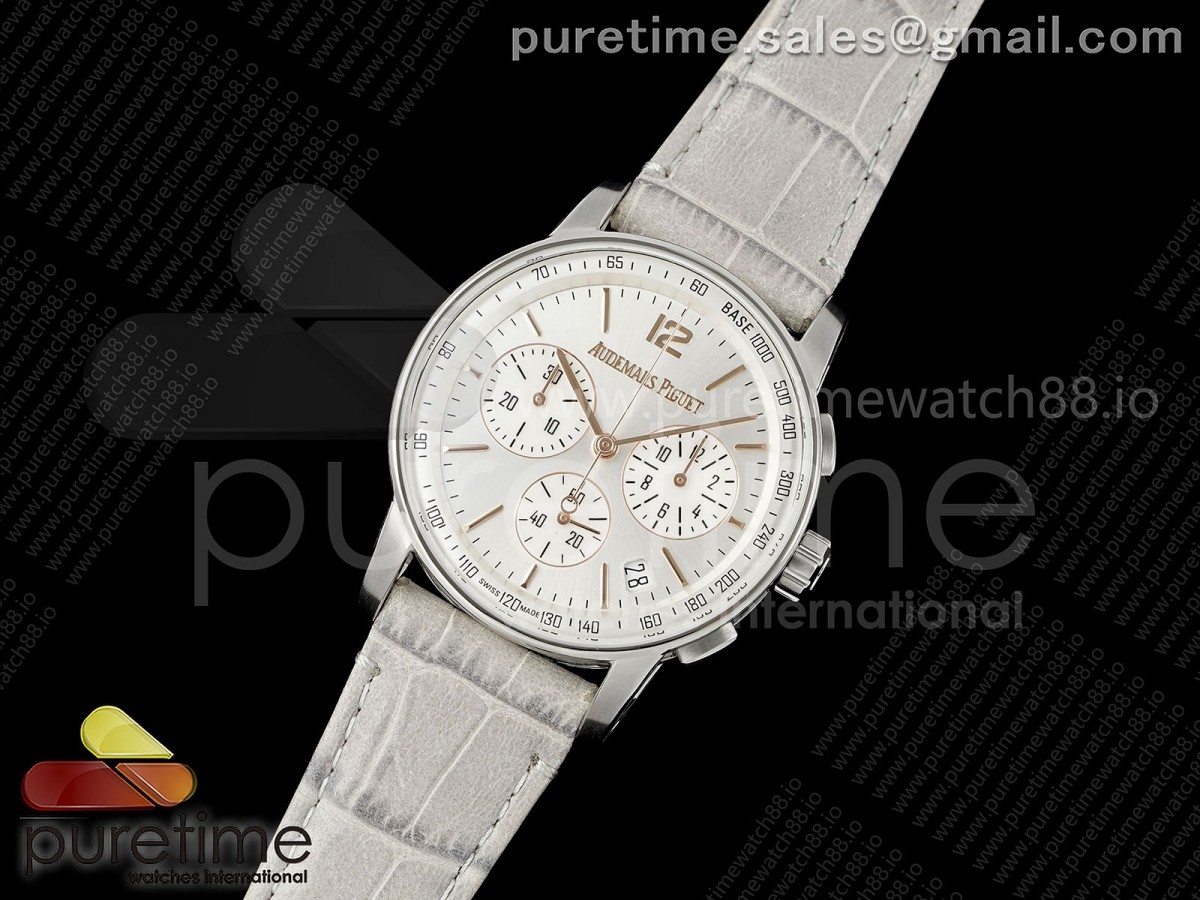 • APSF 오데마피게 코드11.59 크로노 26393 실버다이얼 그레이가죽스트랩 Code 11.59 Chrono 26393 SS APSF 1:1 Best Edition Silver Dial on Gray Leather Strap SA4401 Super Clone
