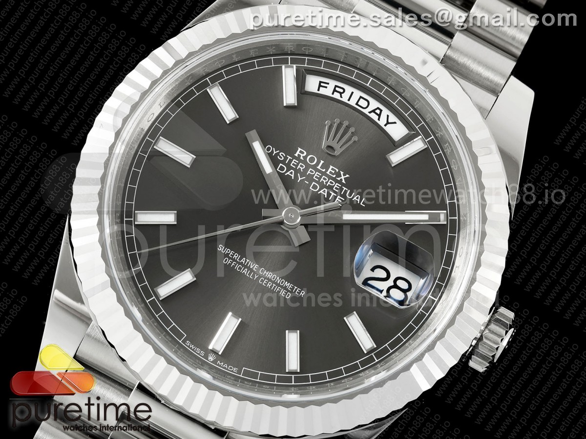 • (NEW) VSF V2 롤렉스 데이데이트40 텅스텐(Cu-W) 그레이다이얼 스틸브레이슬릿 182g DayDate 40 228239 VSF 1:1 Best Edition Gray Stick Dial on President Bracelet VS3255 V2