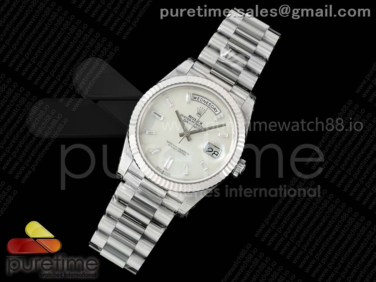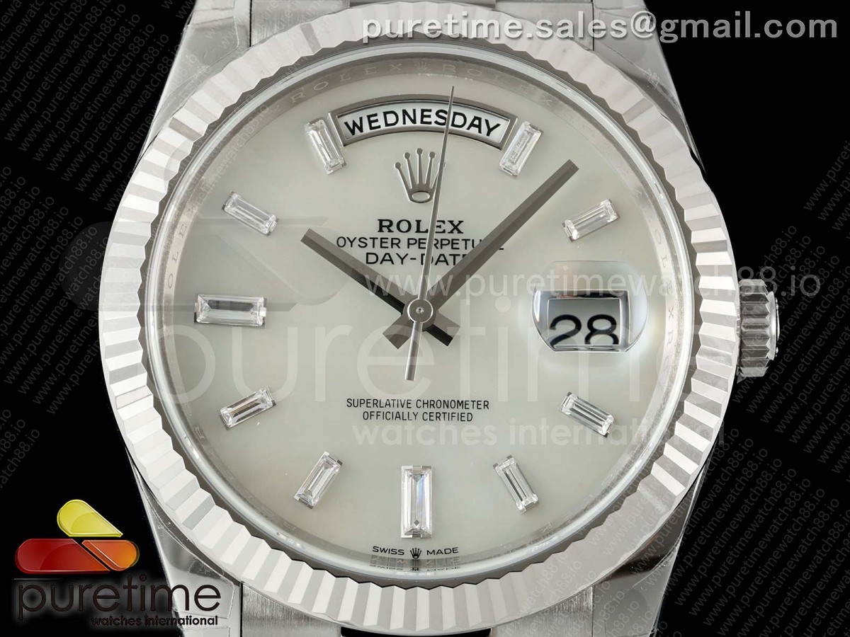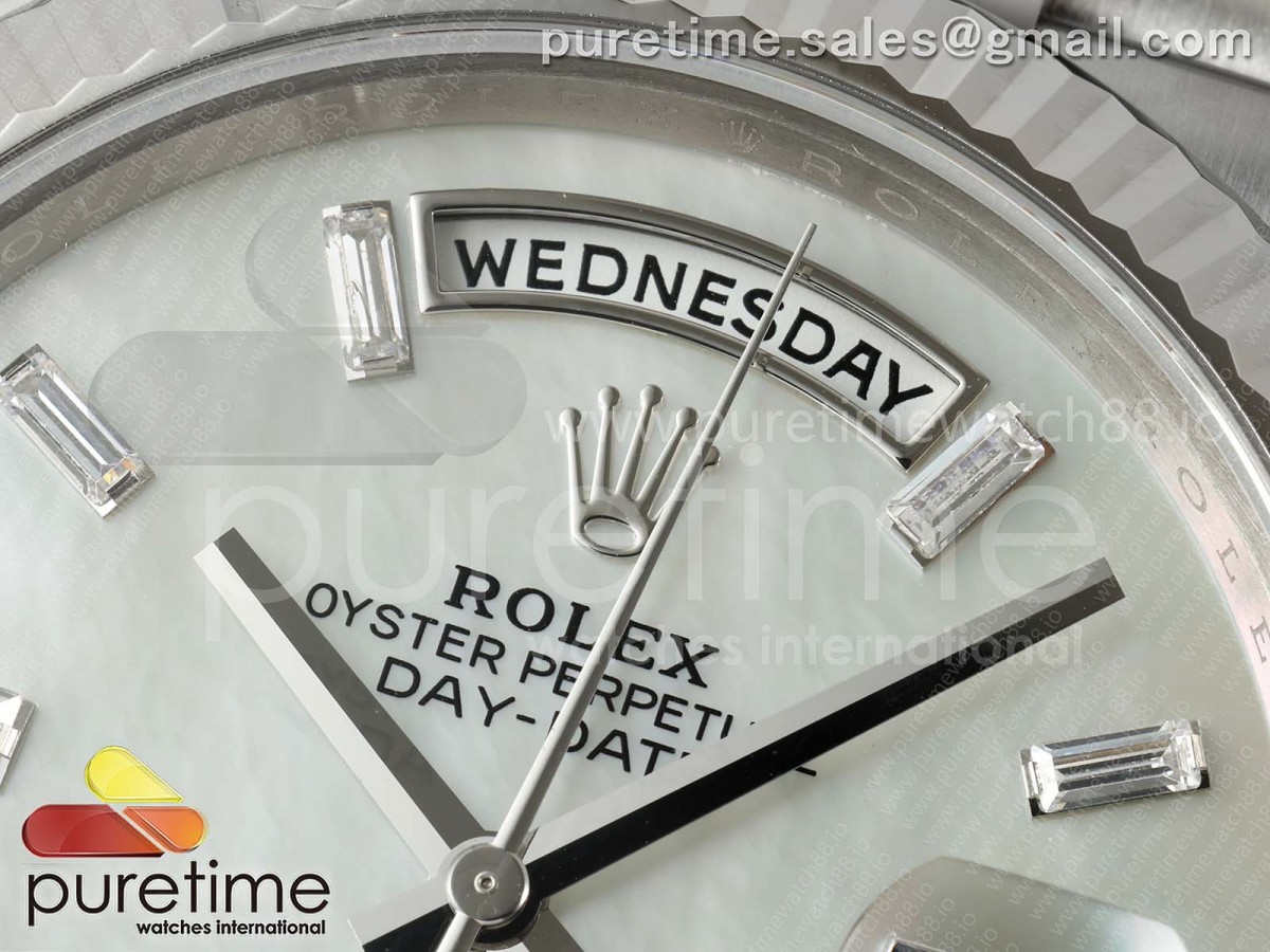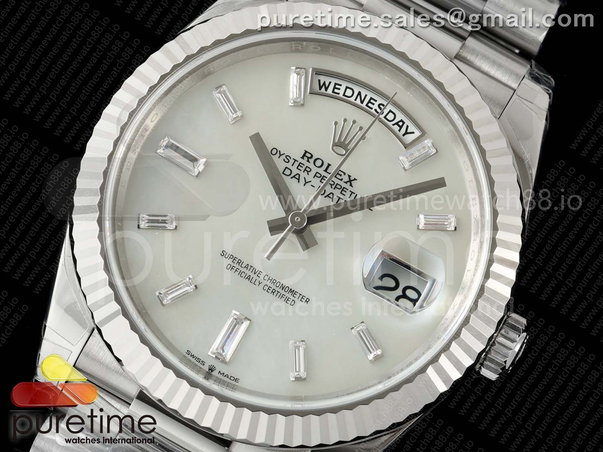 (NEW) VSF V2 롤렉스 데이데이트40 텅스텐(Cu-W) 자개바게트다이얼 스틸브레이슬릿 182g DayDate 40 228239 VSF 1:1 Best Edition White MOP Crystal Dial on President Bracelet VS3255 V2 > 데이데이트(DAYDATE)