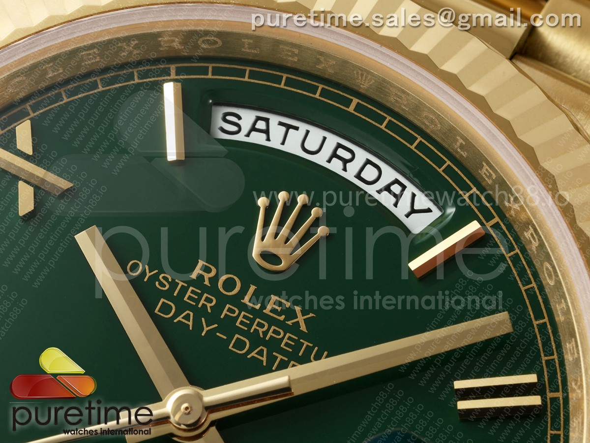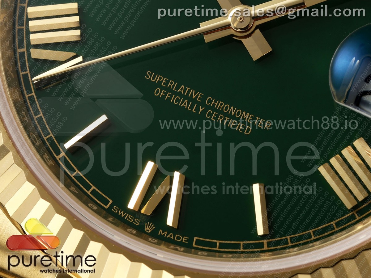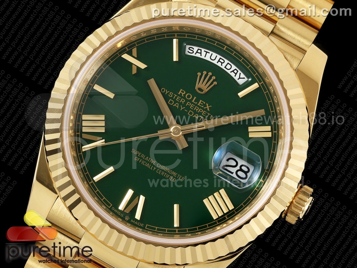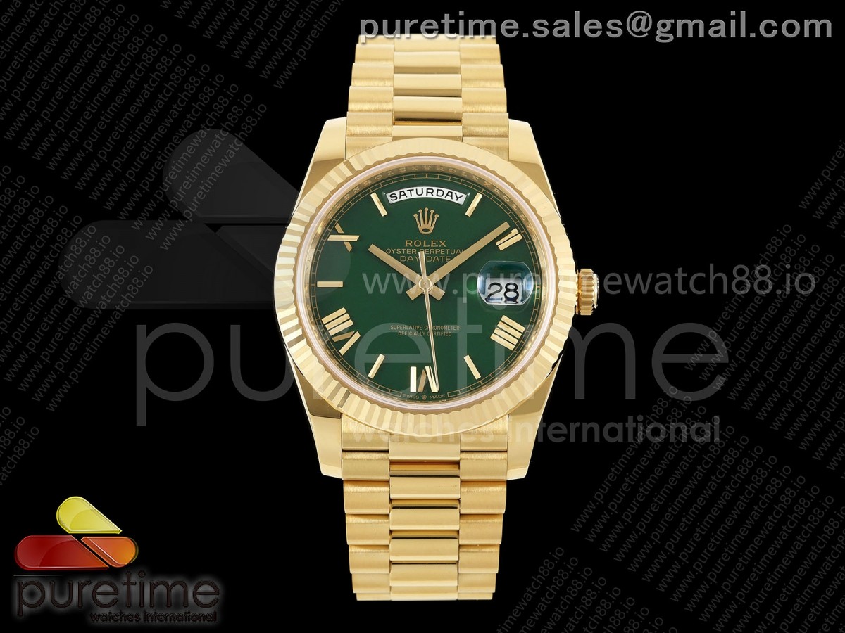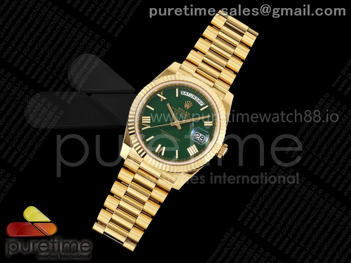 RCF 롤렉스 데이데이트40 옐로우골드 텅스텐(Cu-W) 그린로만다이얼 스틸브레이슬릿 210g Day Date 40 YG RCF 1:1 Best Edition Green Roman Dial on President Bracelet VR3255 > 데이데이트(DAYDATE)