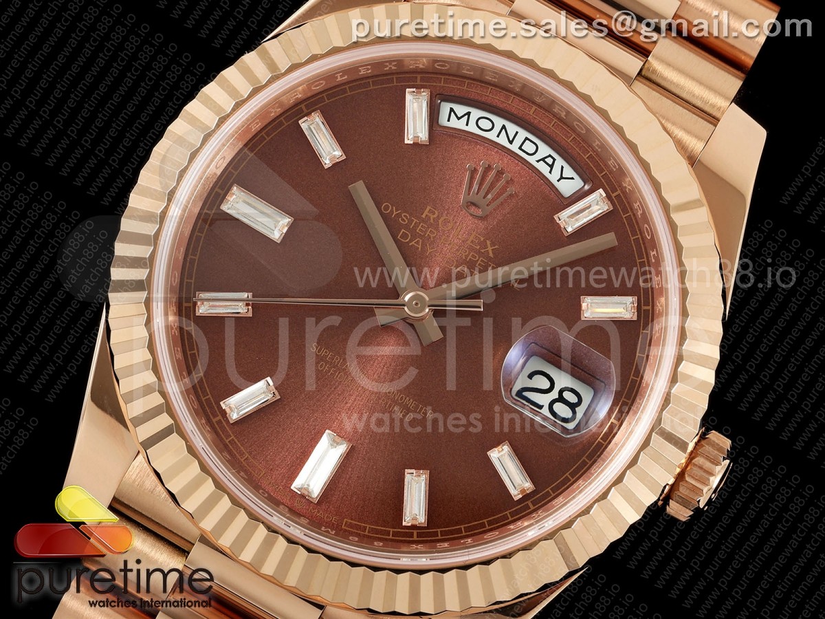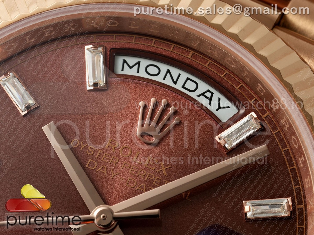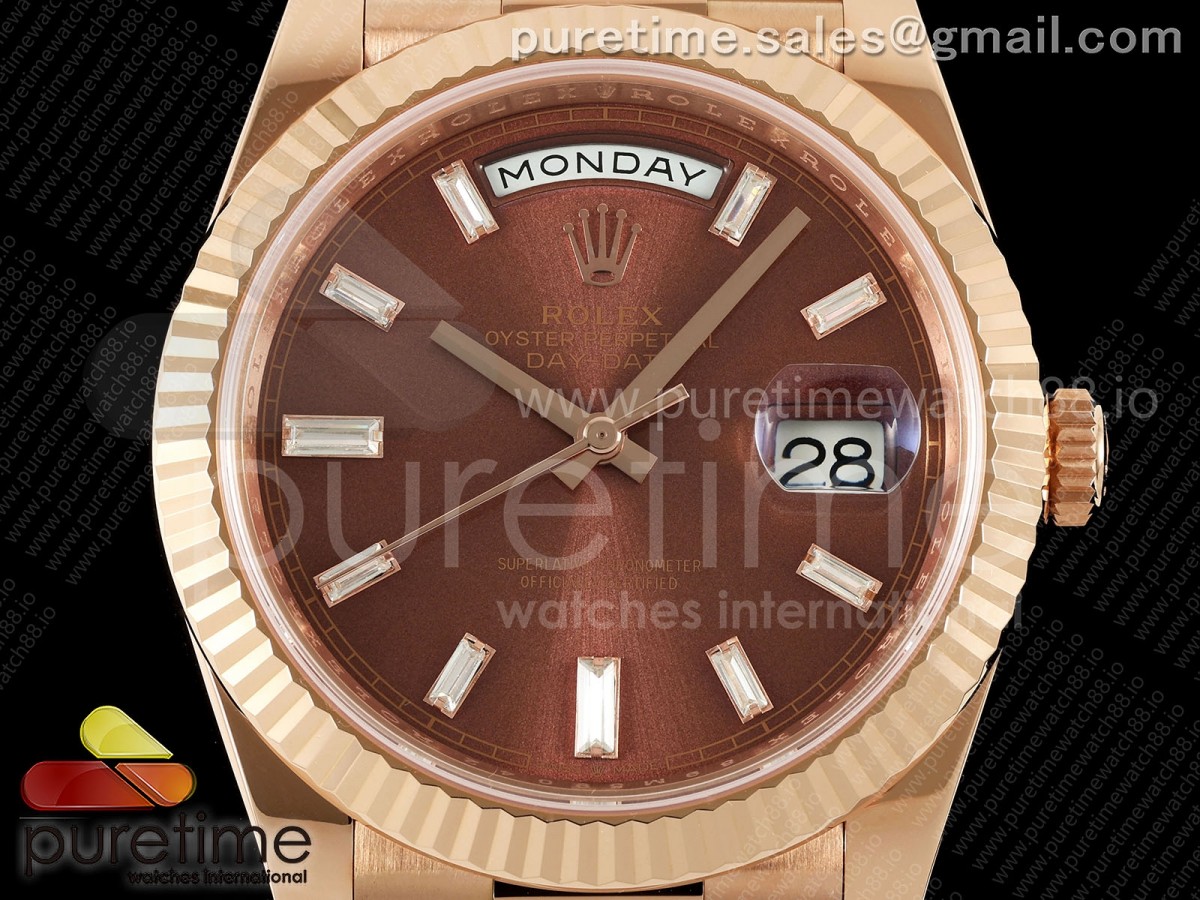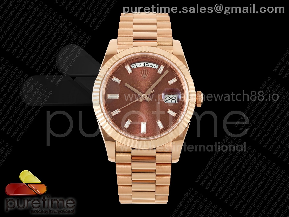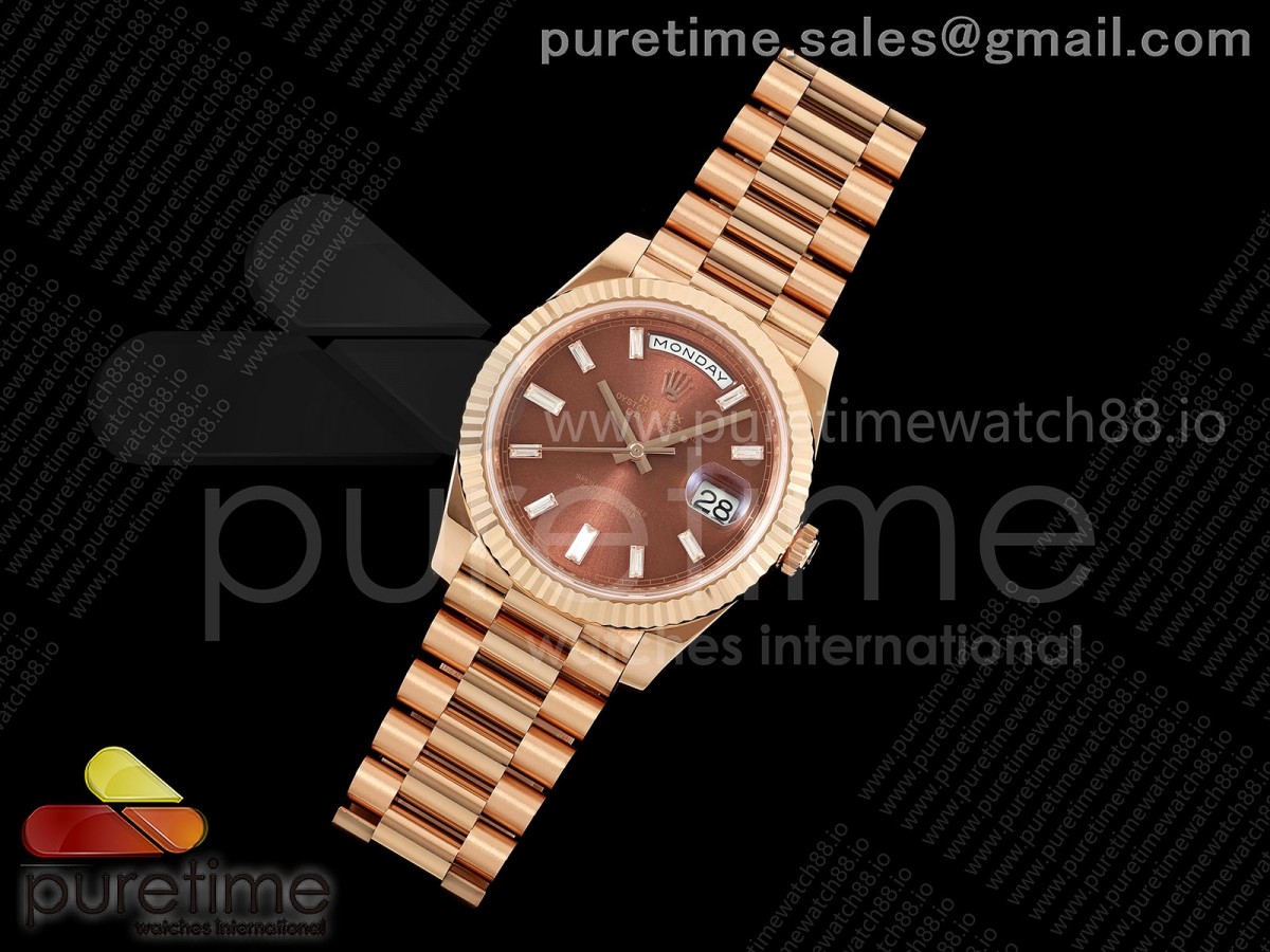RCF 롤렉스 데이데이트40 로즈골드 텅스텐(Cu-W) 브라운바게트다이얼 스틸브레이슬릿 210g Day Date 40 RG RCF 1:1 Best Edition Brown Crystal Dial on President Bracelet VR3255 > 데이데이트(DAYDATE)
