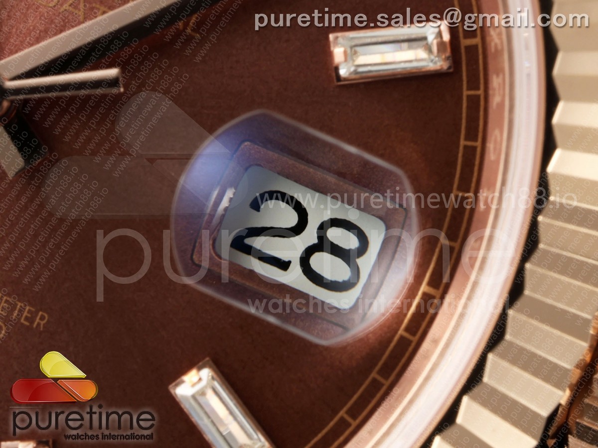 • RCF 롤렉스 데이데이트40 로즈골드 텅스텐(Cu-W) 브라운바게트다이얼 스틸브레이슬릿 210g Day Date 40 RG RCF 1:1 Best Edition Brown Crystal Dial on President Bracelet VR3255