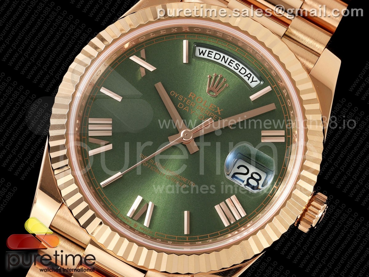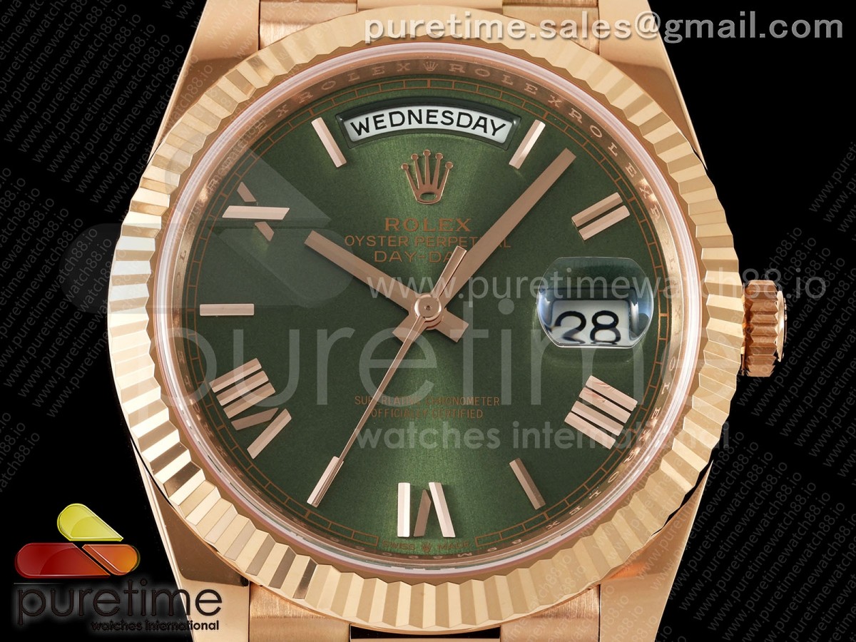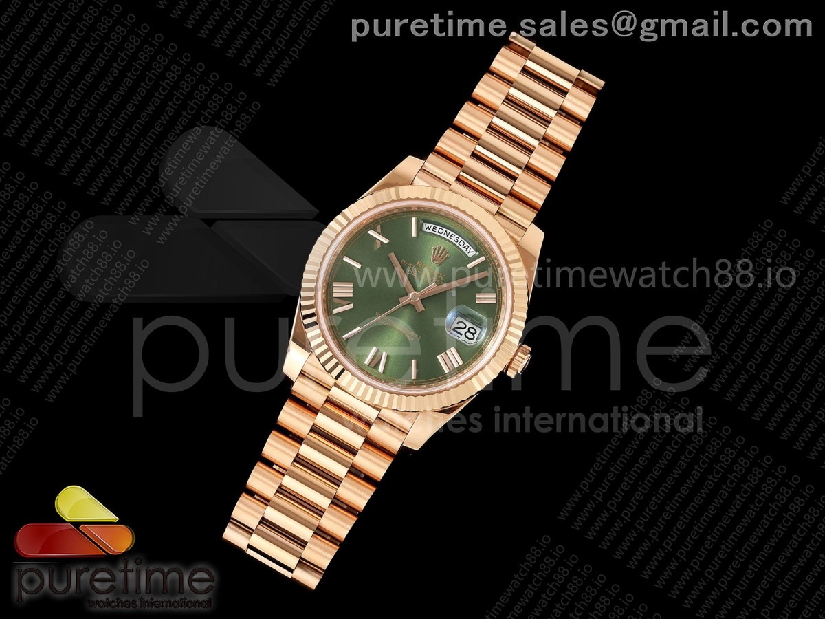 RCF 롤렉스 데이데이트40 로즈골드 텅스텐(Cu-W) 그린로만다이얼 스틸브레이슬릿 210g Day Date 40 RG RCF 1:1 Best Edition Green Roman Dial on President Bracelet VR3255 > 데이데이트(DAYDATE)
