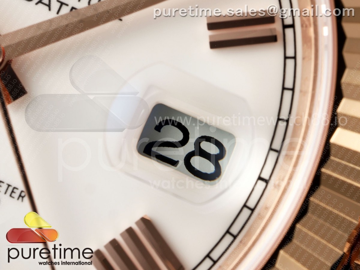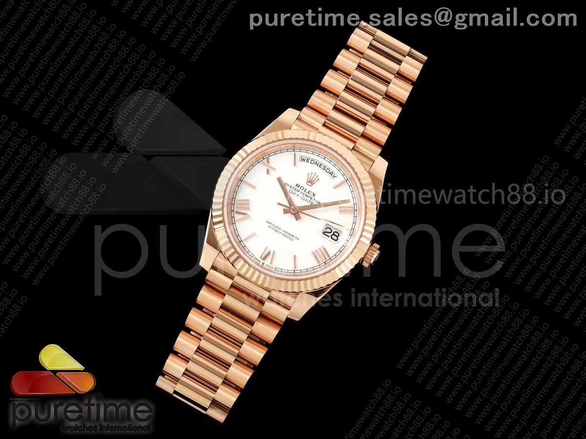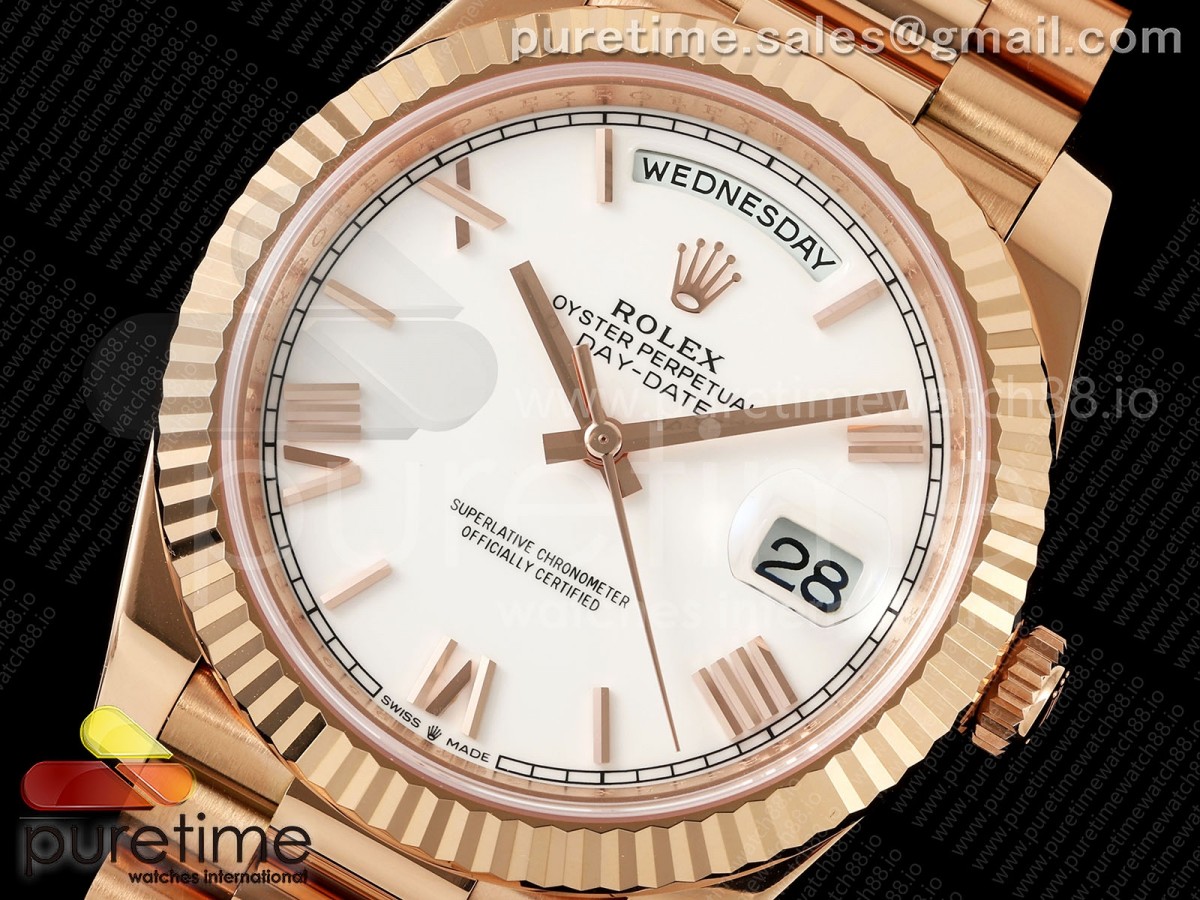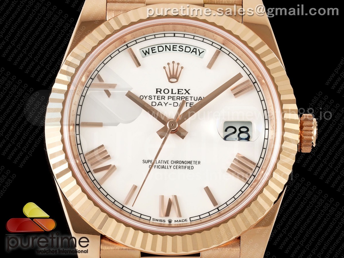 RCF 롤렉스 데이데이트40 로즈골드 텅스텐(Cu-W) 화이트로만다이얼 스틸브레이슬릿 210g Day Date 40 RG RCF 1:1 Best Edition White Roman Dial on President Bracelet VR3255 > 데이데이트(DAYDATE)