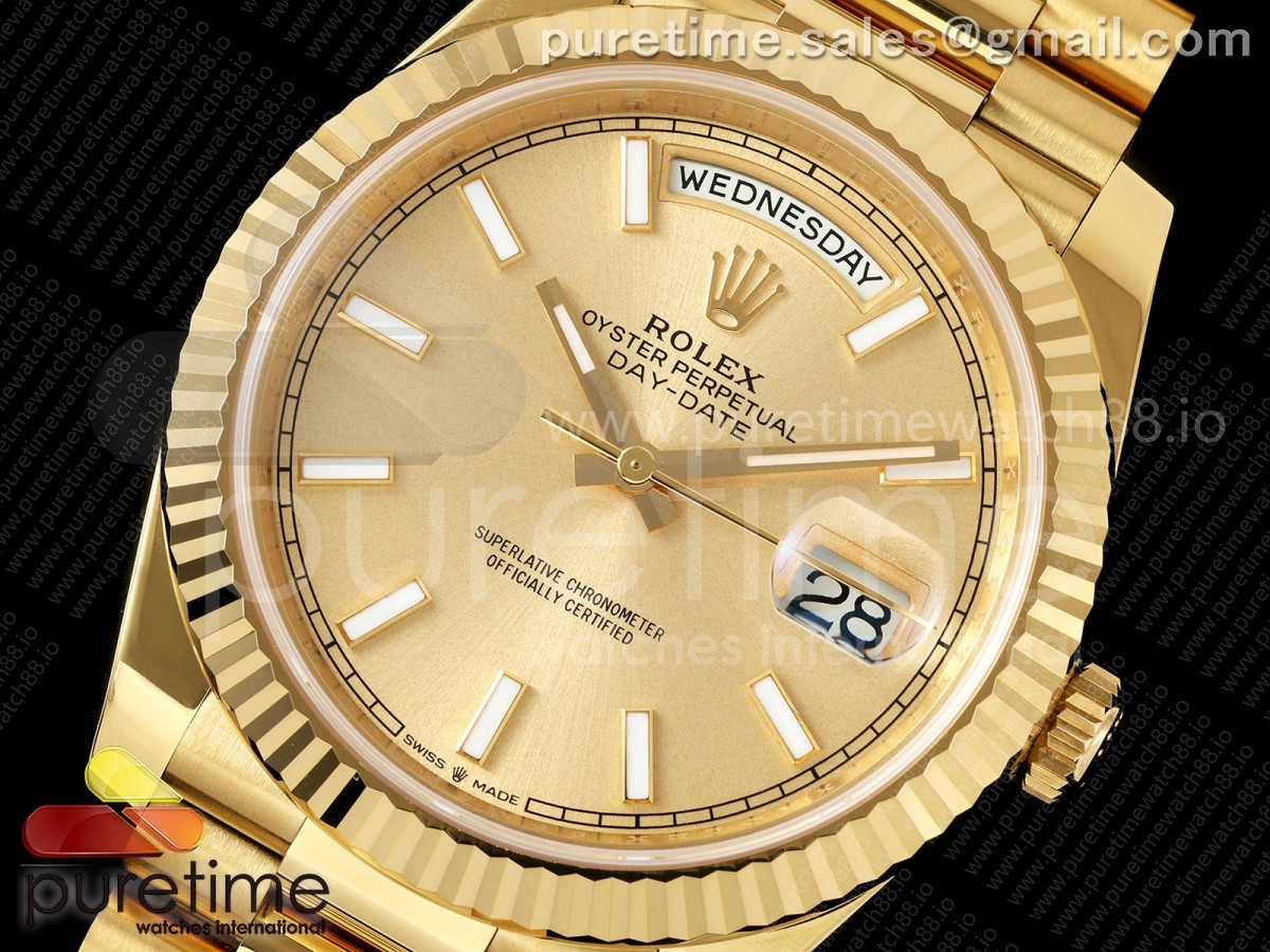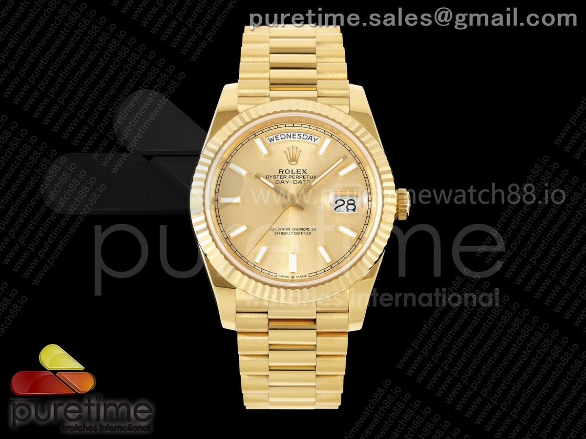 RCF 롤렉스 데이데이트40 옐로우골드 텅스텐(Cu-W) 골드다이얼 스틸브레이슬릿 210g Day Date 40 YG RCF 1:1 Best Edition YG Stick Dial on President Bracelet VR3255