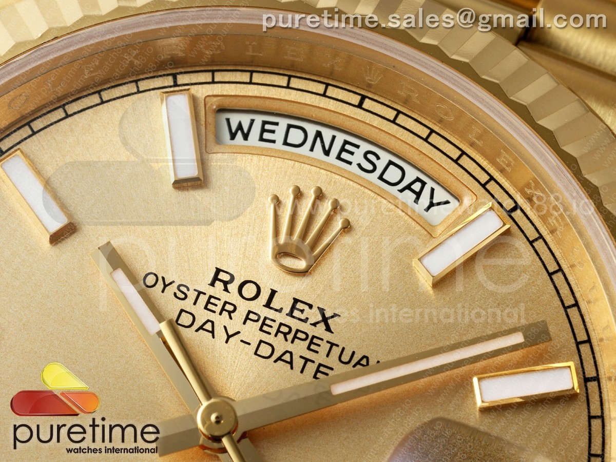 뒤로 RCF 롤렉스 데이데이트40 옐로우골드 텅스텐(Cu-W) 골드다이얼 스틸브레이슬릿 210g Day Date 40 YG RCF 1:1 Best Edition YG Stick Dial on President Bracelet VR3255 > 데이데이트(DAYDATE)