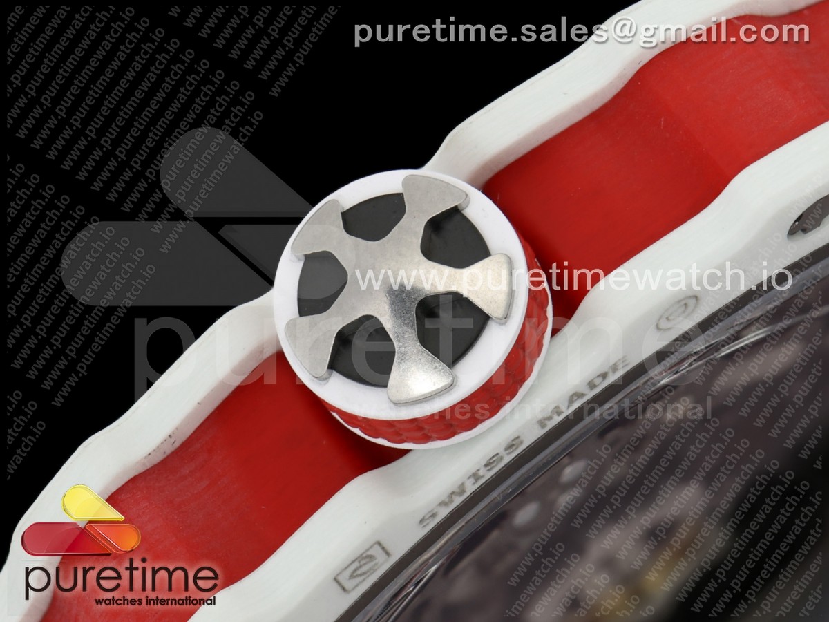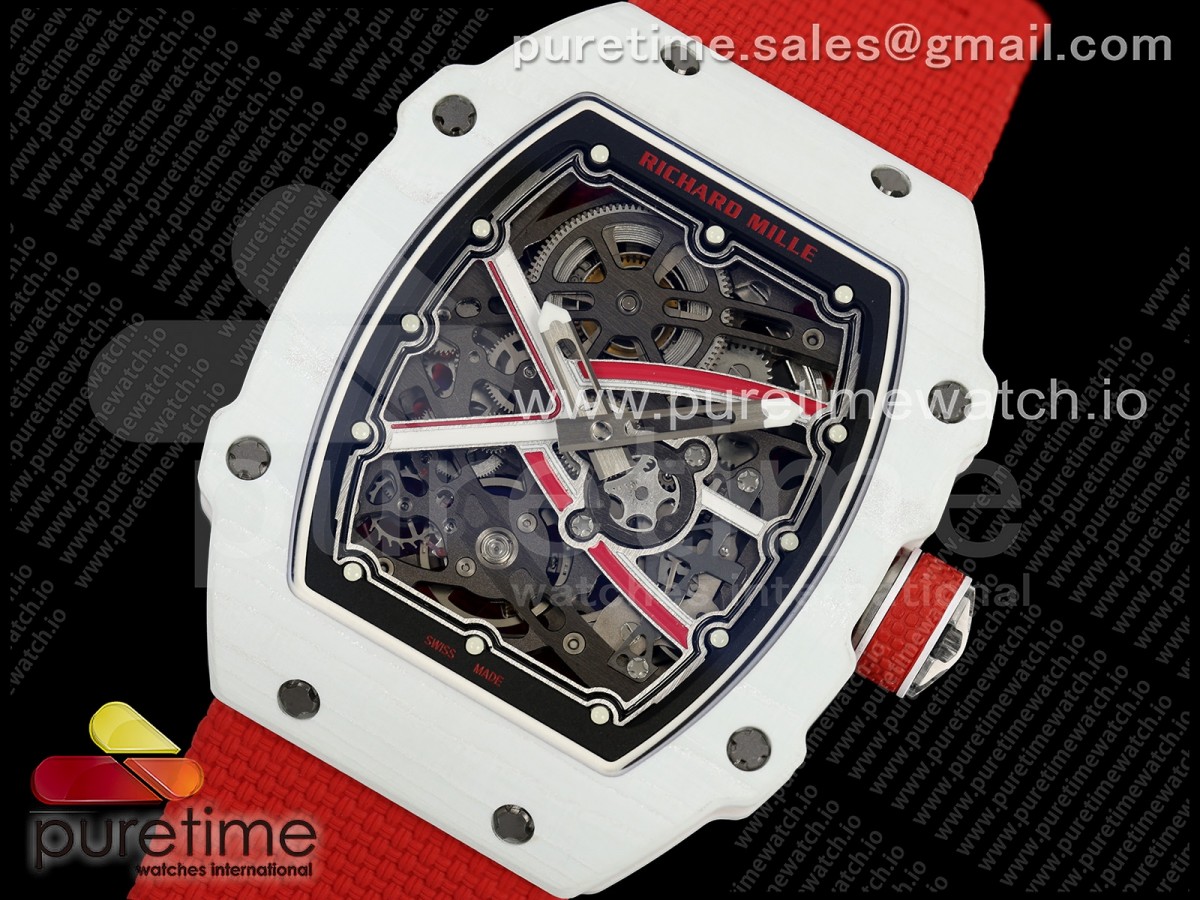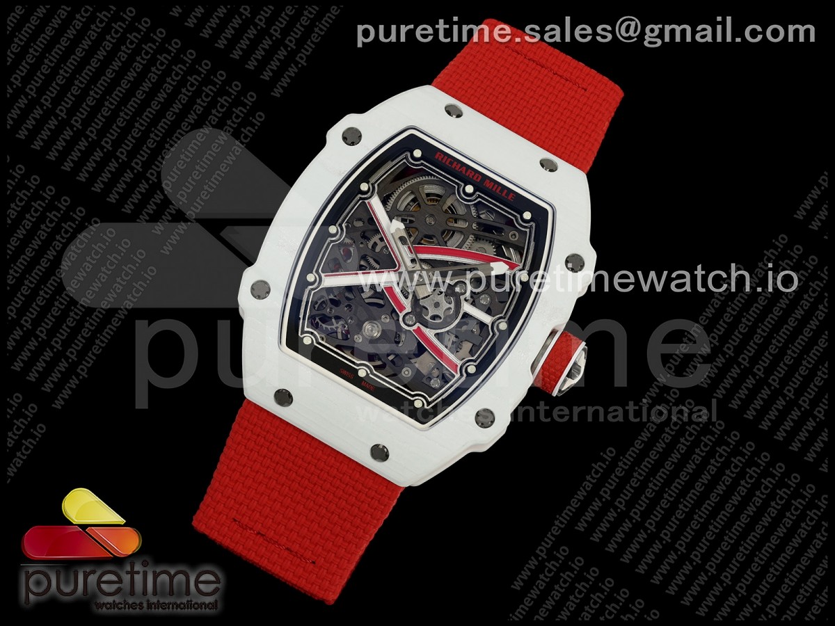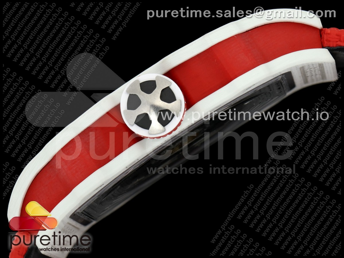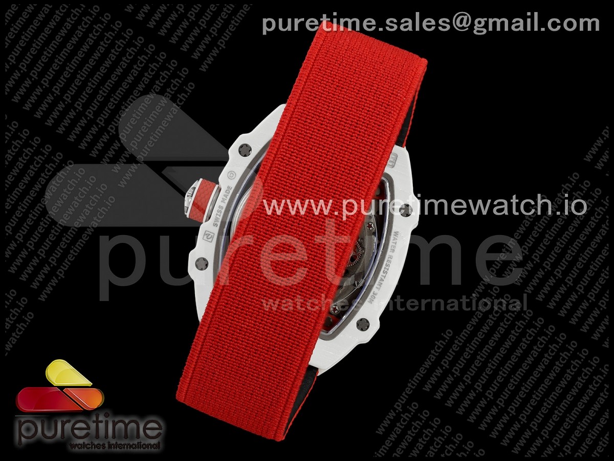 • Umi Maker's V2 리차드밀 RM67-02 화이트NPTP 샤를 화이트스켈레톤다이얼 레드나일론스트랩 Umi Maker's RM67-02 White NTPT Charles Red/White Skeleton Dial on Nylon strap CRMA7 Clone V2