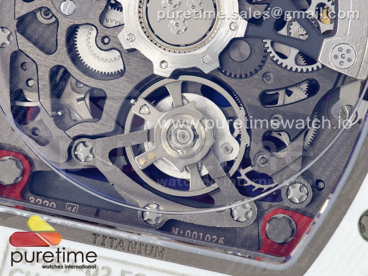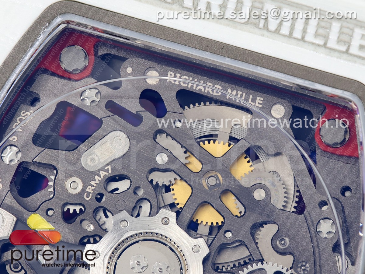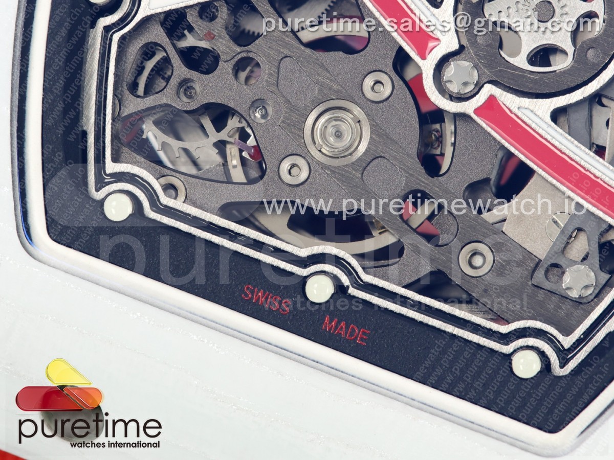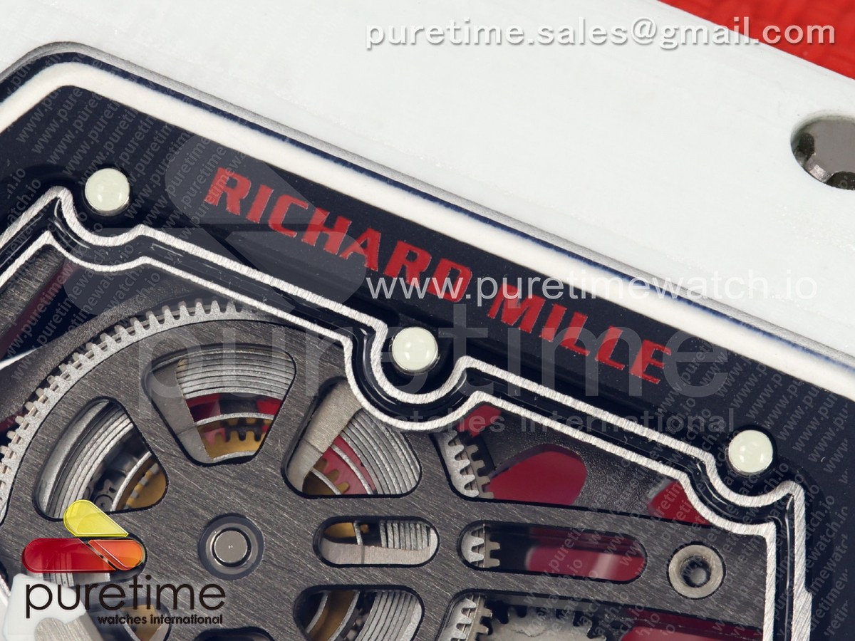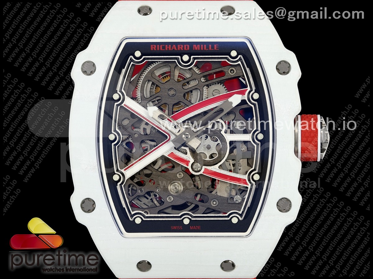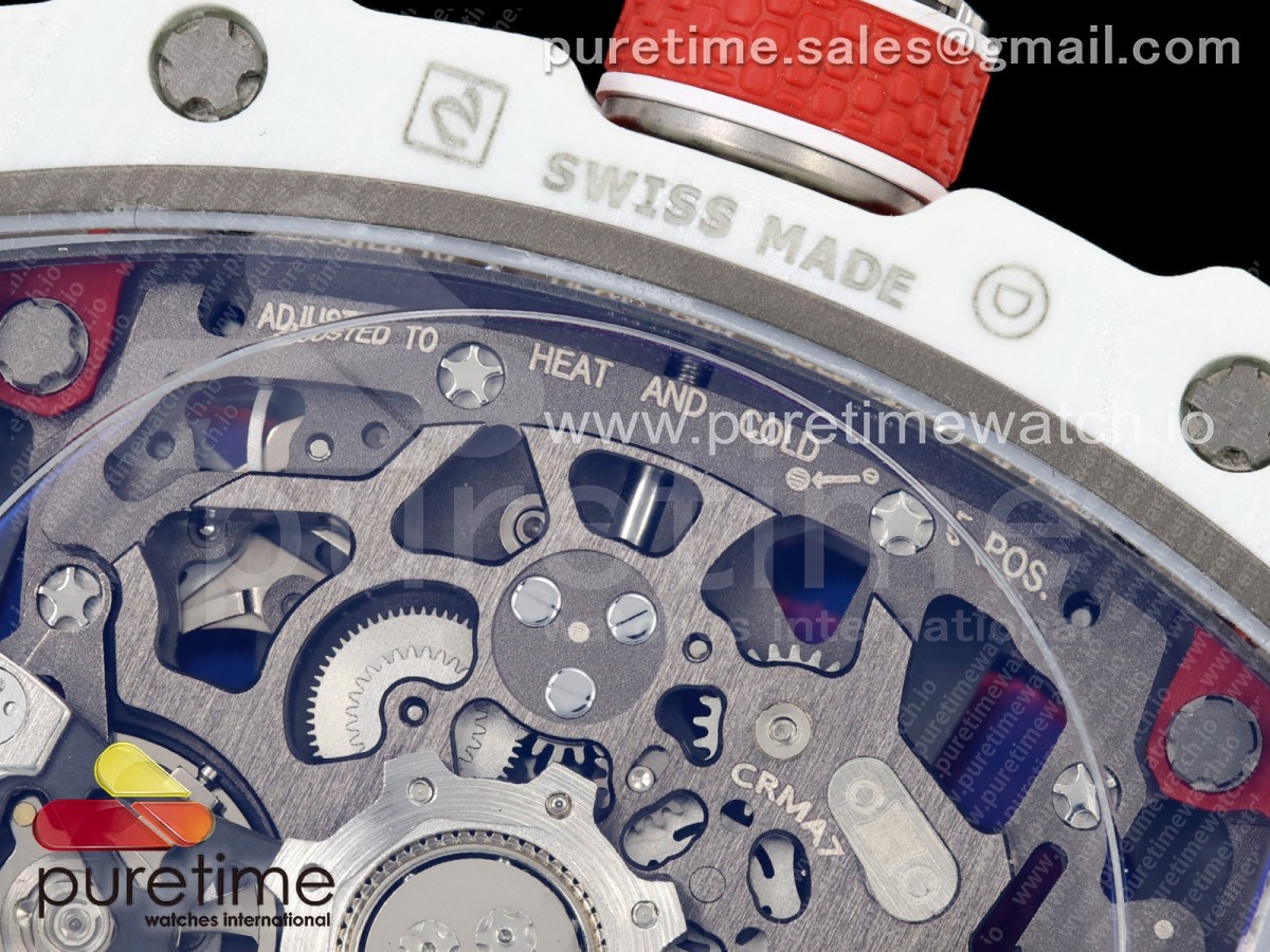• Umi Maker's V2 리차드밀 RM67-02 화이트NPTP 샤를 화이트스켈레톤다이얼 레드나일론스트랩 Umi Maker's RM67-02 White NTPT Charles Red/White Skeleton Dial on Nylon strap CRMA7 Clone V2