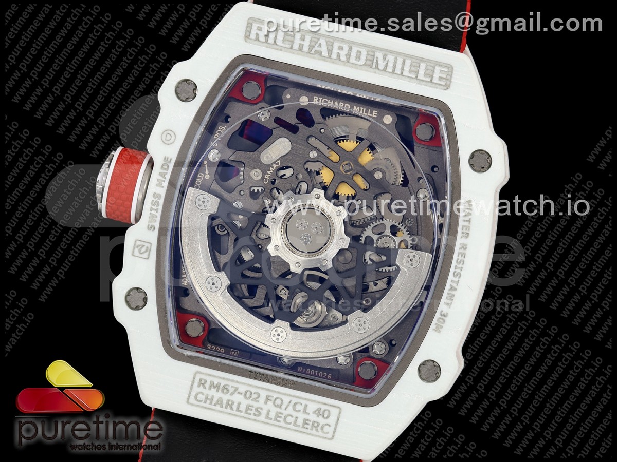 Umi Maker's V2 리차드밀 RM67-02 화이트NPTP 샤를 화이트스켈레톤다이얼 레드나일론스트랩 Umi Maker's RM67-02 White NTPT Charles Red/White Skeleton Dial on Nylon strap CRMA7 Clone V2 > 리차드밀(RICHARD MILLE)