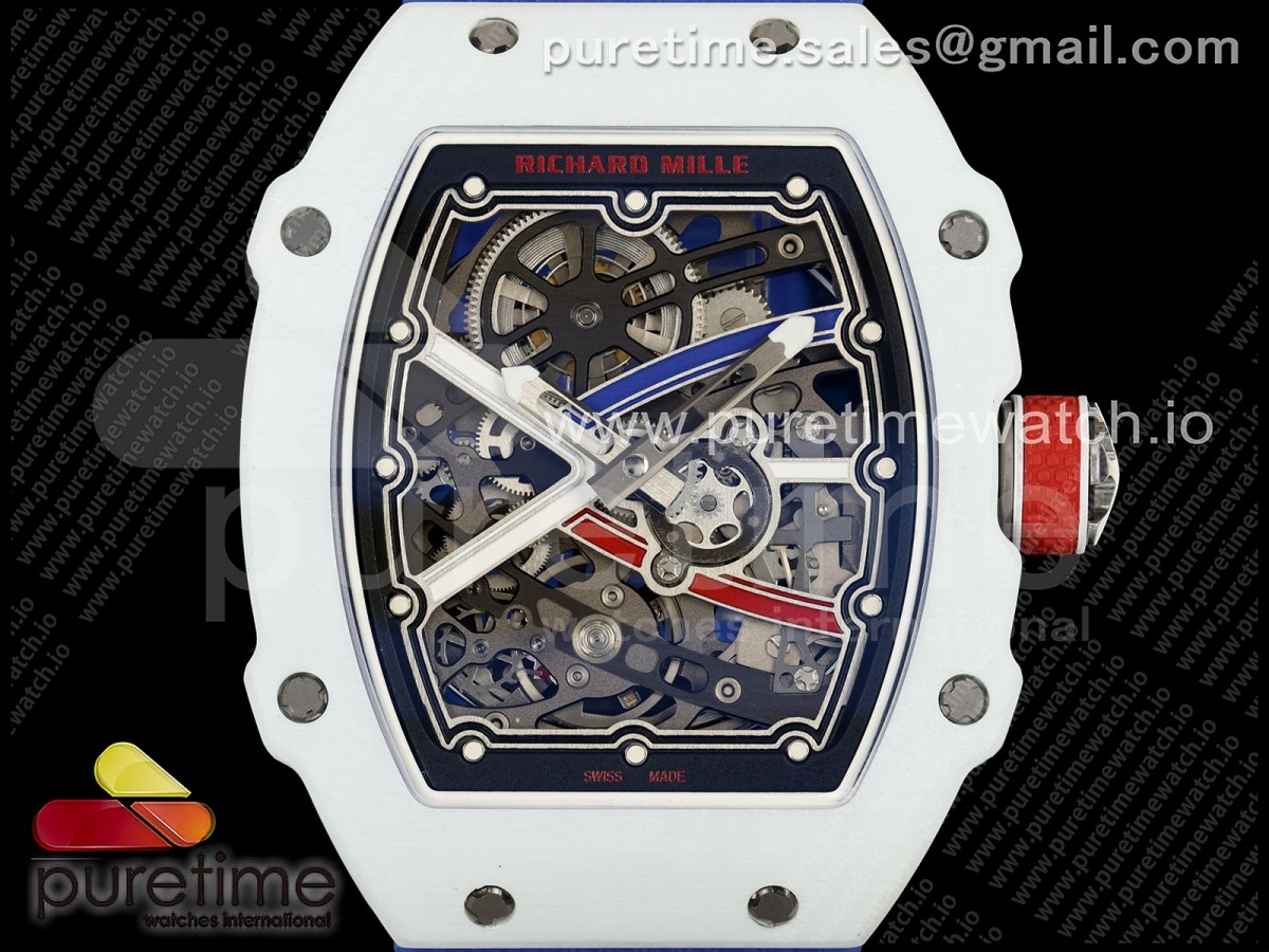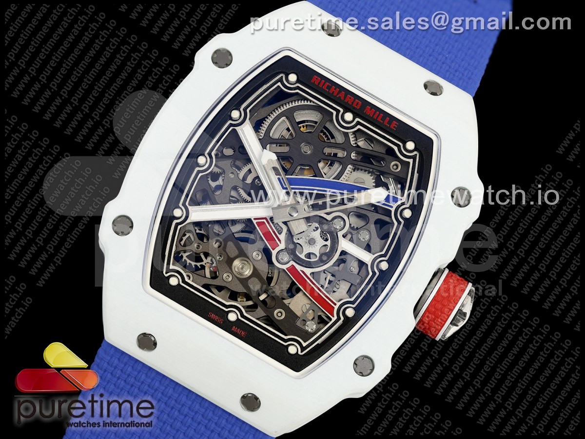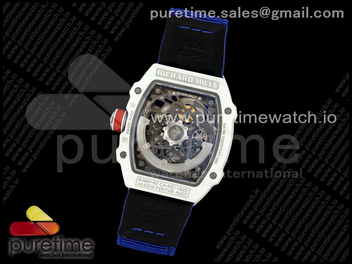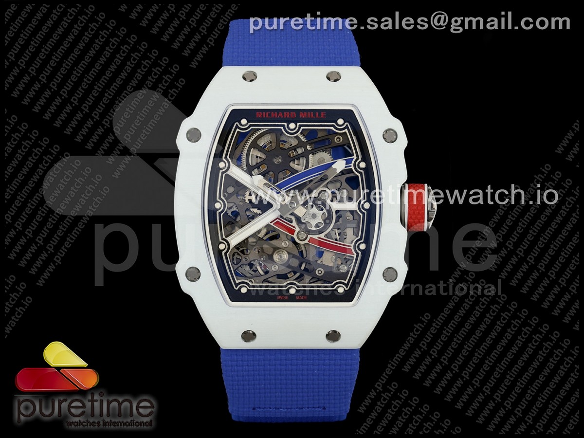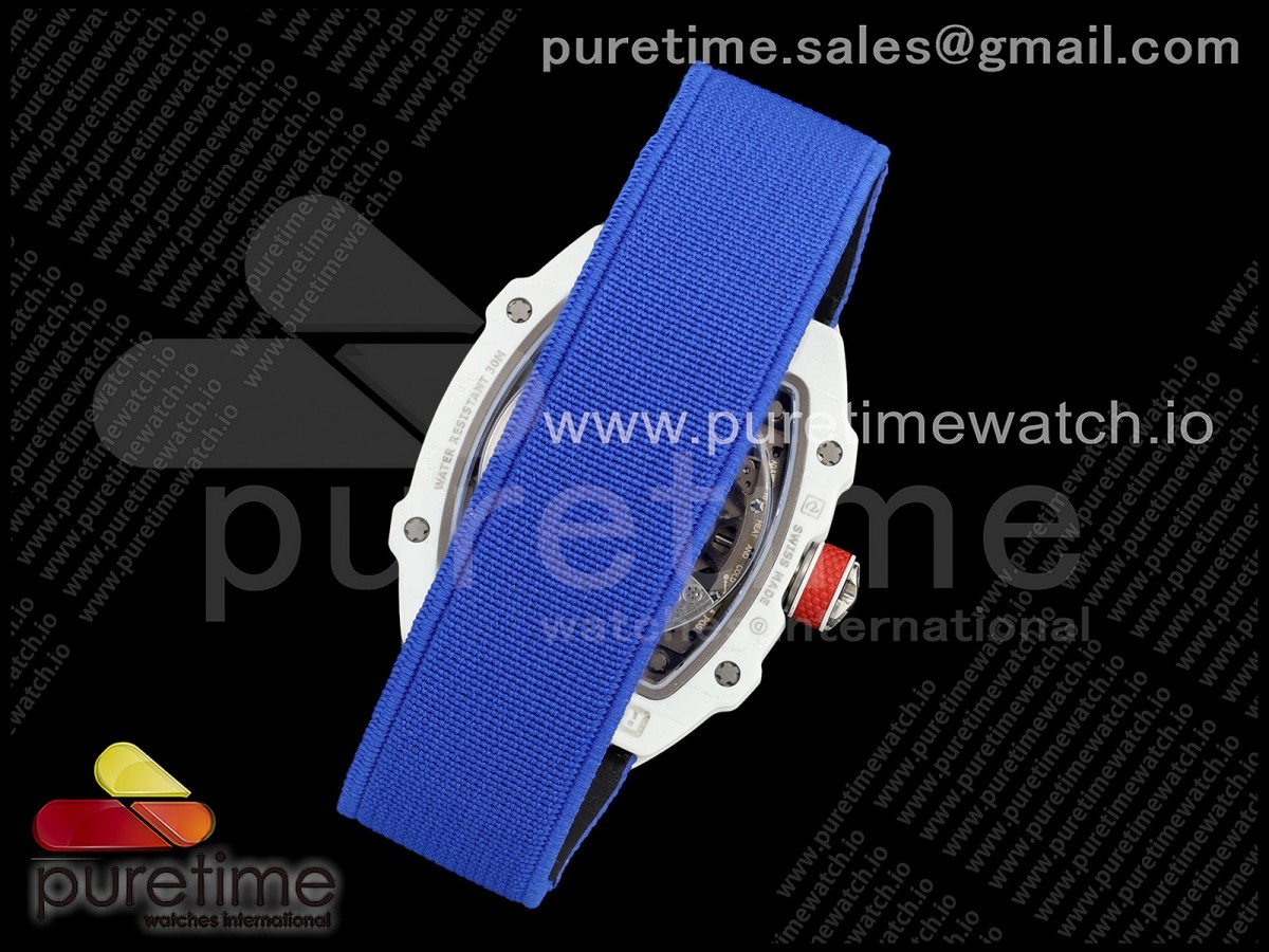 • Umi Maker's V2 리차드밀 RM67-02 화이트NPTP 프랑스 화이트스켈레톤다이얼 블루나일론스트랩 Umi Maker's RM67-02 White NTPT France Blue/Red/White Skeleton Dial on Nylon strap CRMA7 Clone V2