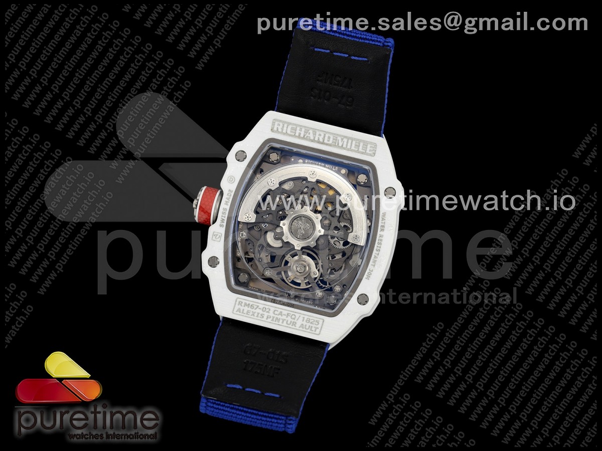 Umi Maker's V2 리차드밀 RM67-02 화이트NPTP 프랑스 화이트스켈레톤다이얼 블루나일론스트랩 Umi Maker's RM67-02 White NTPT France Blue/Red/White Skeleton Dial on Nylon strap CRMA7 Clone V2 > 리차드밀(RICHARD MILLE)
