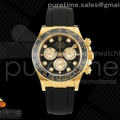ARF 롤렉스 데이토나 옐로우골드 텅스텐(Cu-W) 블랙8P다이얼 블랙러버스트랩 162g Daytona 126518 ARF 1:1 Best Edition Black/YG Diamonds Dial on Oysterflex Strap DD4131 (Weighted)