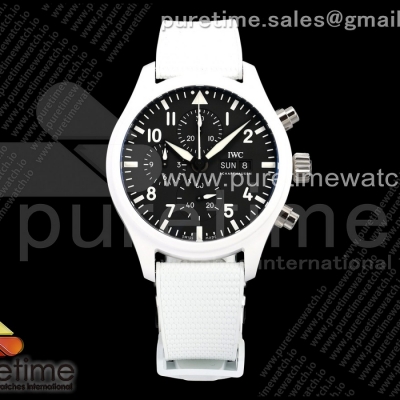 APSF IWC 파일럿 크로노 화이트세라믹 IW389401 레이크 타호 화이트다이얼 화이트러버스트랩 Pilot Chrono IW389105 White Ceramic “Lake Tahoe” APSF 1:1 Best Edition on White Rubber Strap DD69385 Super Clone