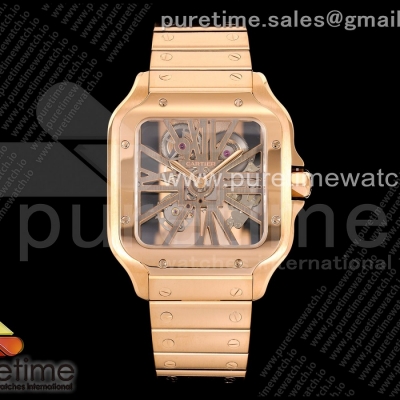 RICH 산토스 드 까르띠에 로즈골드 40미리 스켈레톤다이얼 스틸브레이슬릿(가죽스트랩) Santos Skeleton RG RICH 1:1 Best Edition Skeleton Dial 9611MC Super Clone (2 Straps)