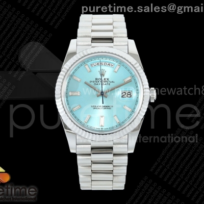 TMF 롤렉스 데이데이트40 텅스텐(Cu-W)220g 아이스블루바게트다이얼 스틸브레이슬릿 Day Date 40 SS TMF 1:1 Best Edition Ice Blue Crystal Dial on President Bracelet VR3255 (220g)
