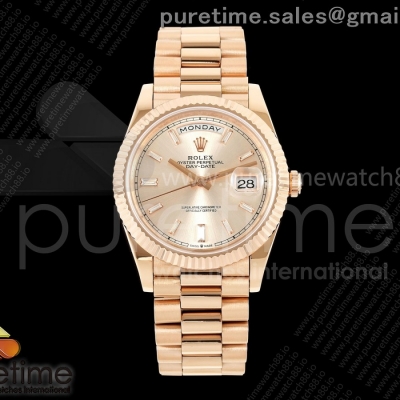 CBDF 롤렉스 데이데이트40 로즈골드 텅스텐(Cu-W) 로골바게트다이얼 스틸브레이슬릿 210g Day Date 40 RG CBDF 1:1 Best Edition RG Crystal Dial on President Bracelet VR3255 (210g)