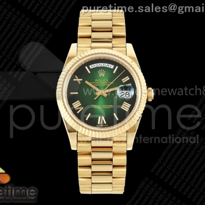 • CBDF 롤렉스 데이데이트40 옐로우골드 텅스텐(Cu-W) 그린옴브레로만다이얼 스틸브레이슬릿 210g Day Date 40 YG CBDF 1:1 Best Edition Green Ombre Roman Dial on President Bracelet VR3255 (210g)