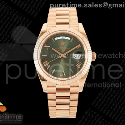 QF V6 롤렉스 데이데이트40 로즈골드 텅스텐(Cu-W) 그린로만다이얼 스틸브레이슬릿 199g DayDate 40 RG QF 1:1 Best Edition Green Roman Dial on President Bracelet A2836 V6 (Gain Weight)