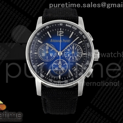 APSF 오데마피게 코드11.59 크로노 26393 블루/블랙다이얼 블랙나일론스트랩 Code 11.59 Chrono 26393 SS APSF 1:1 Best Edition Blue/Black Dial on Black Nylon Strap SA4401 Super Clone