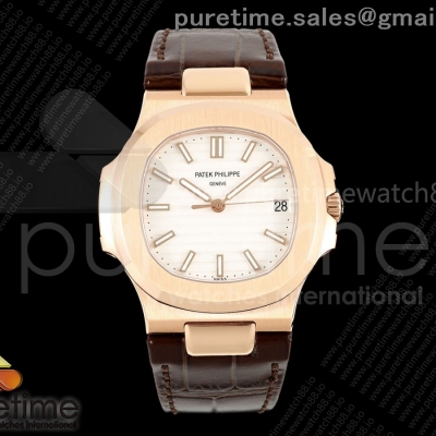 DDF 파텍필립 노틸러스 5711 로즈골드 텅스텐(Cu-W) 화이트다이얼 브라운가죽스트랩 DD330 Nautilus 5711 RG DDF 1:1 Best Edition White Dial on Brown Leather Strap DD330 Super Clone (Weighted)