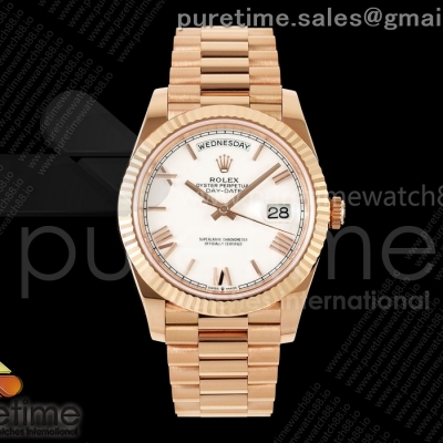 • RCF 롤렉스 데이데이트40 로즈골드 텅스텐(Cu-W) 화이트로만다이얼 스틸브레이슬릿 210g Day Date 40 RG RCF 1:1 Best Edition White Roman Dial on President Bracelet VR3255