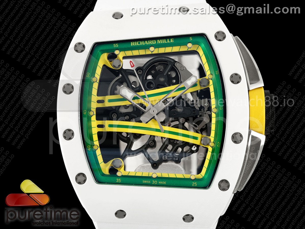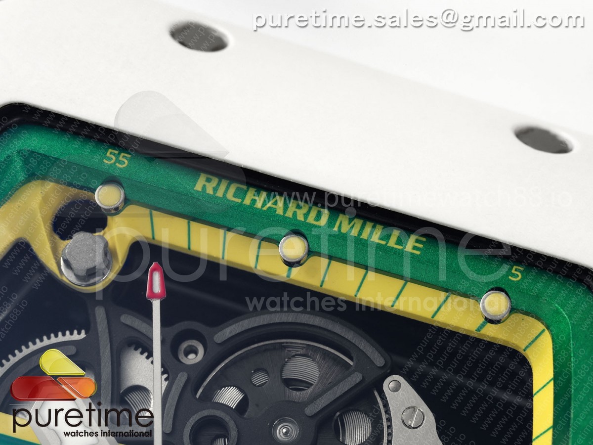 • RF Custom Made 리차드밀 RM061 화이트세라믹 티타늄프리스프렁 그린이너베젤 화이트러버스트랩 RF Custom Made RM061 White Ceramic with Free Sprung Titanium RMUL2 Super Clone