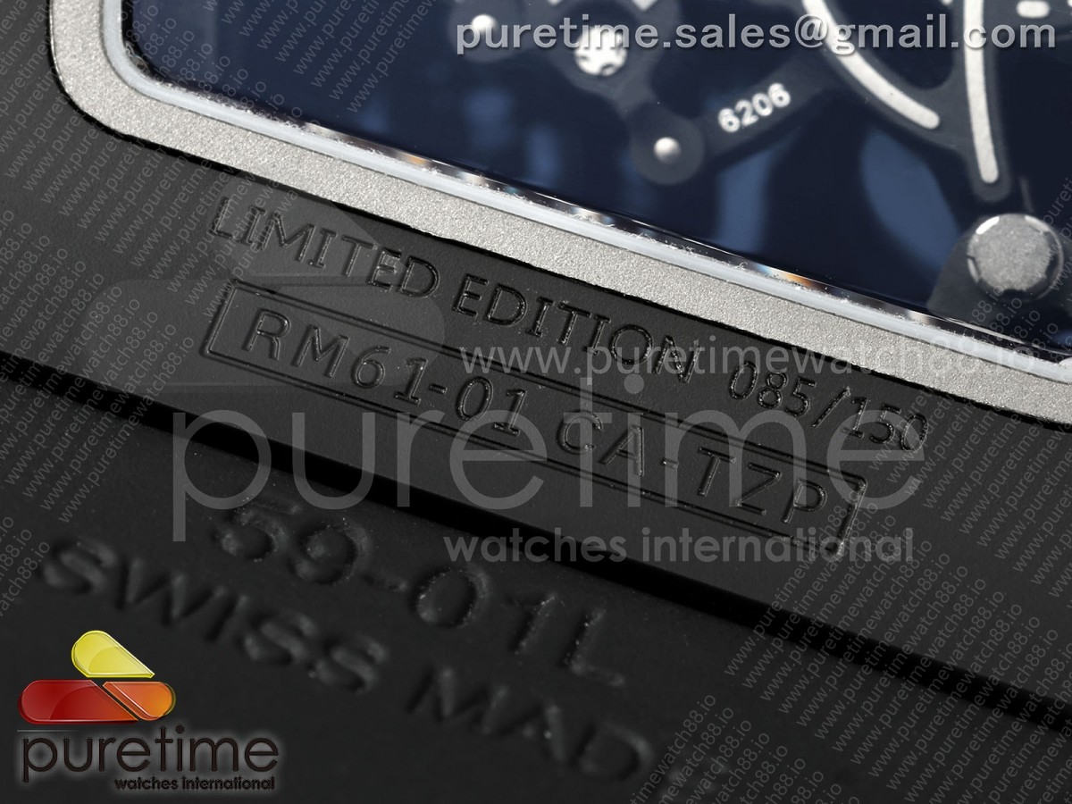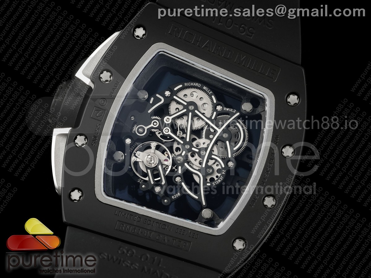 • RF Custom Made 리차드밀 RM061 블랙세라믹 티타늄프리스프렁 그레이이너베젤 블랙러버스트랩 RF Custom Made RM061 Black Ceramic Gray Inner Bezel with Free Sprung Titanium RMUL2 Super Clone RMUL2 Super Clone