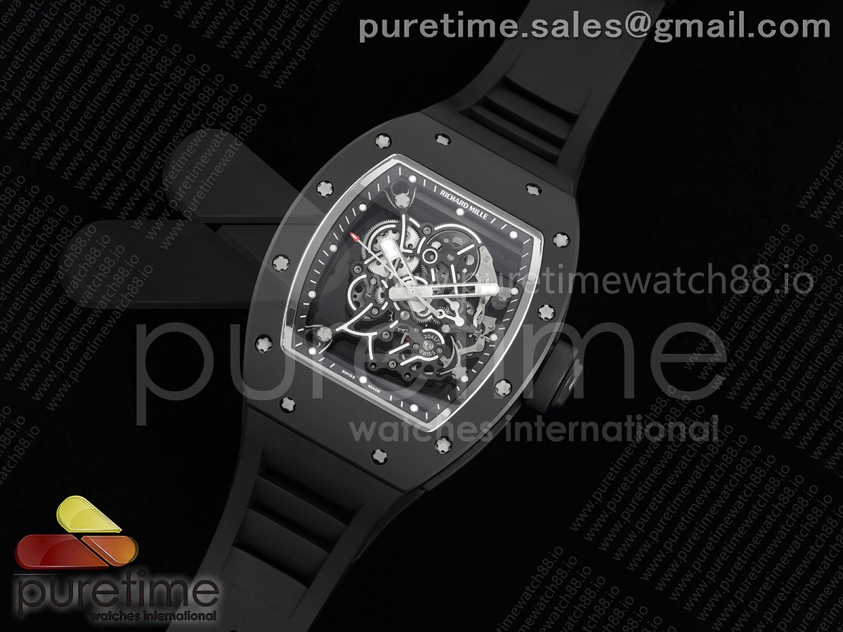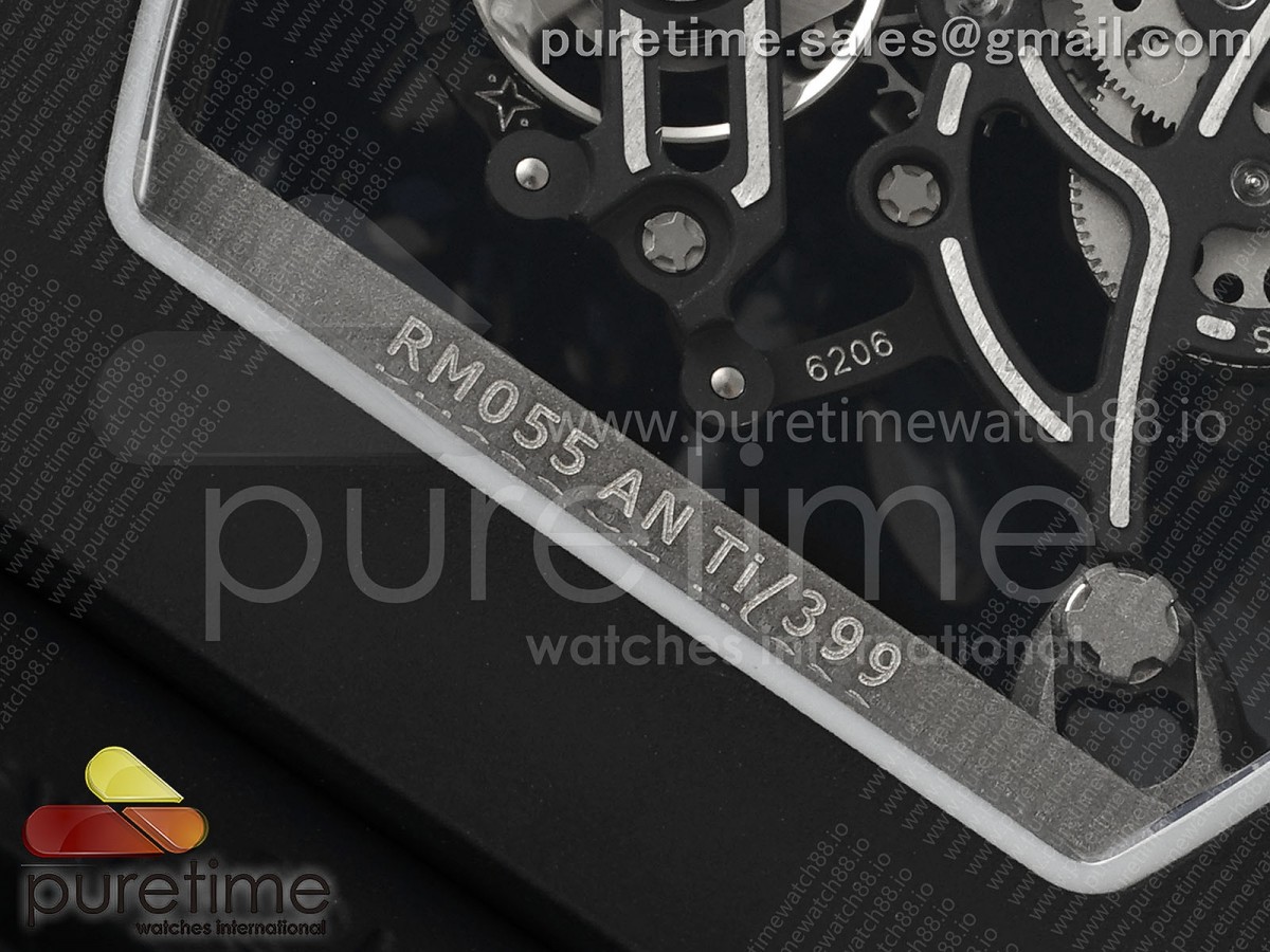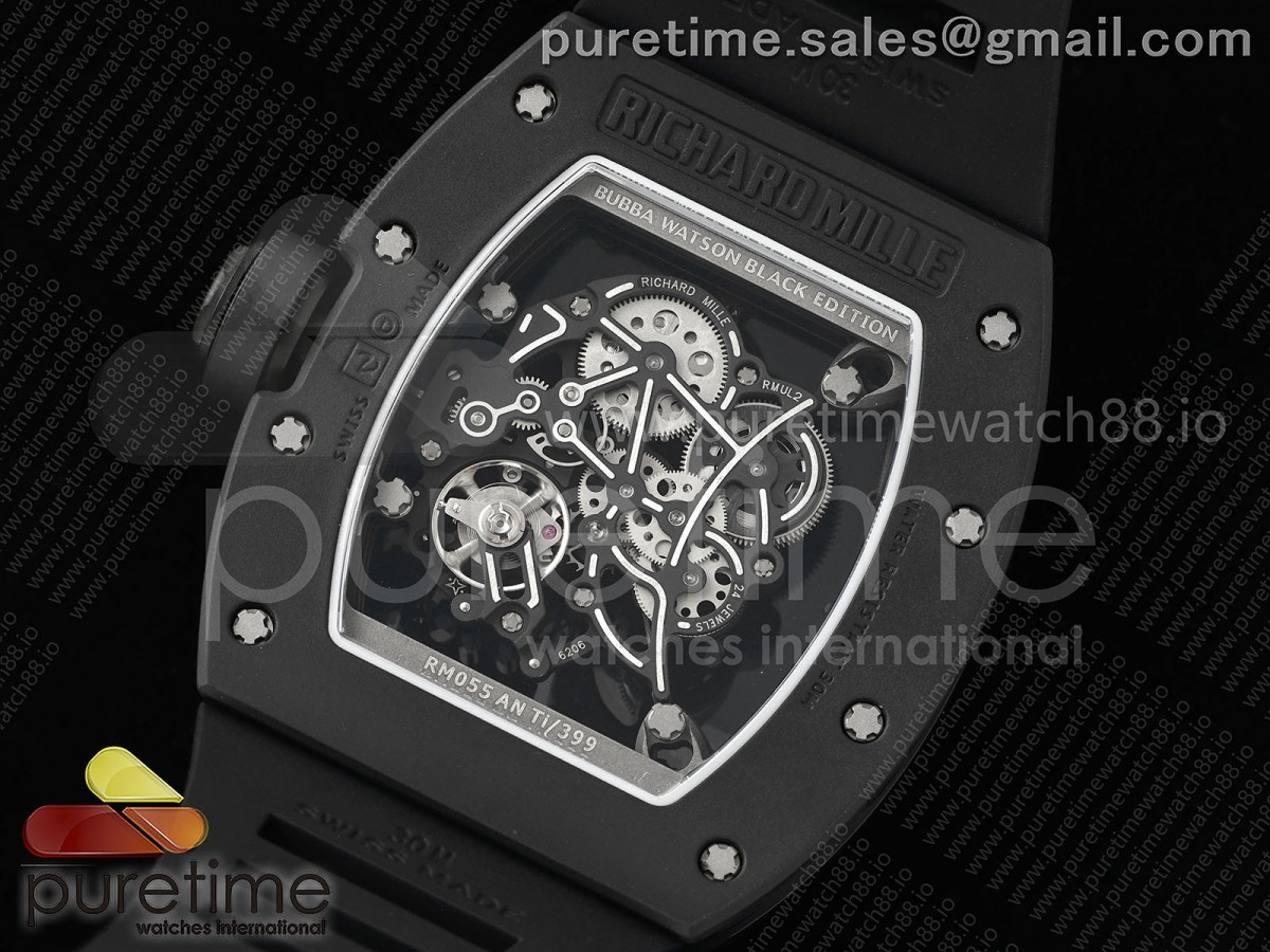 RF 리차드밀 RM055 블랙세라믹 티타늄프리스프렁 스켈레톤다이얼 블랙러버스트랩 RF RM055 Black Ceramic Black Inner Bezel Free Sprung Titanium RMUL2 Super Clone