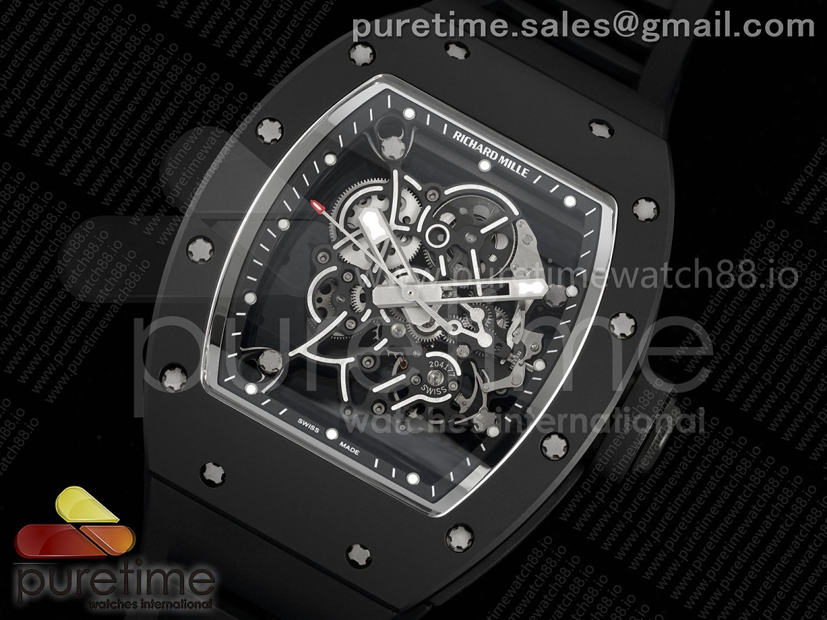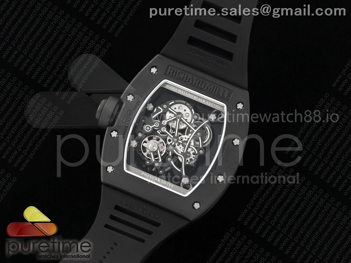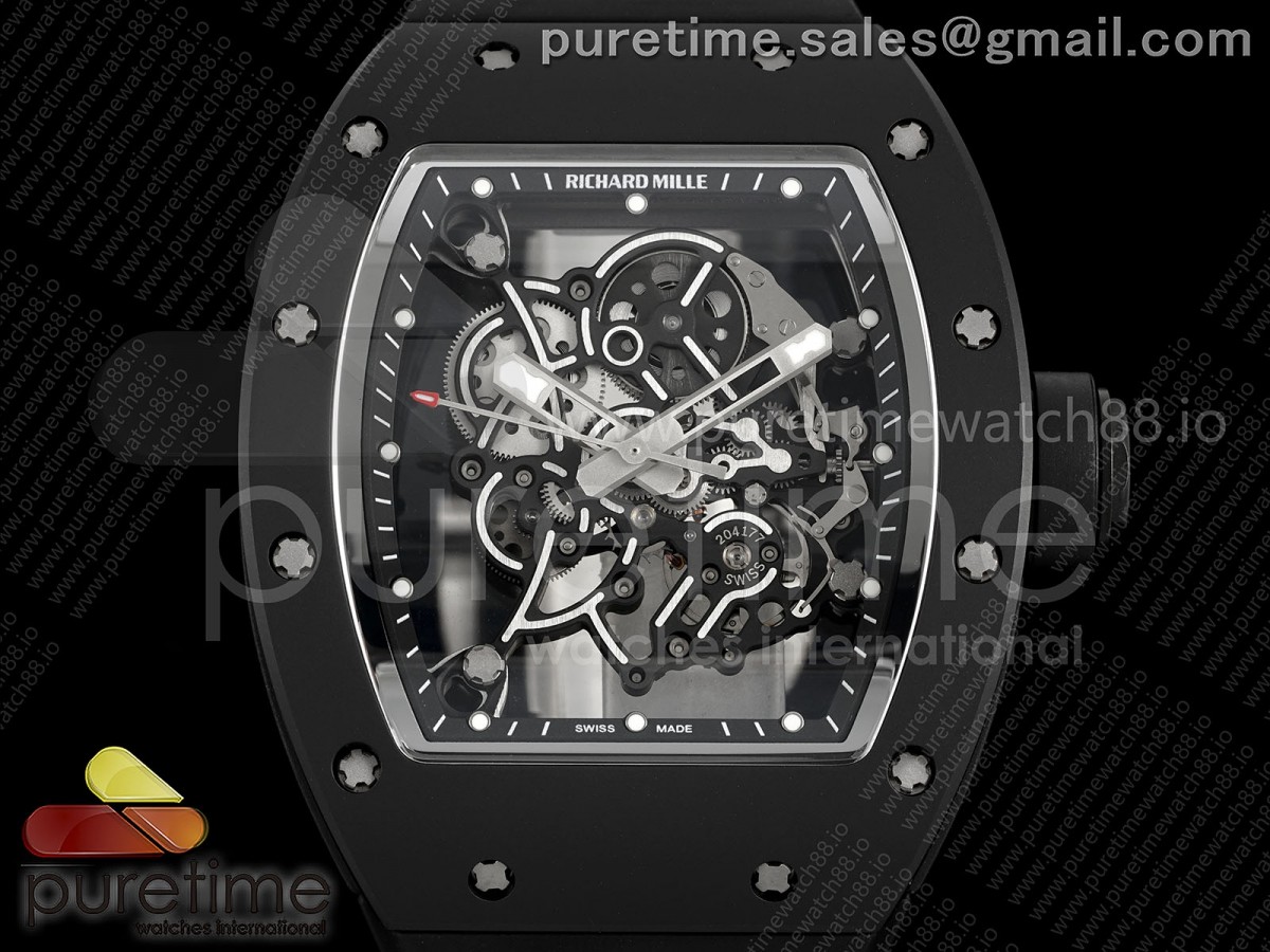 RF 리차드밀 RM055 블랙세라믹 티타늄프리스프렁 스켈레톤다이얼 블랙러버스트랩 RF RM055 Black Ceramic Black Inner Bezel Free Sprung Titanium RMUL2 Super Clone
