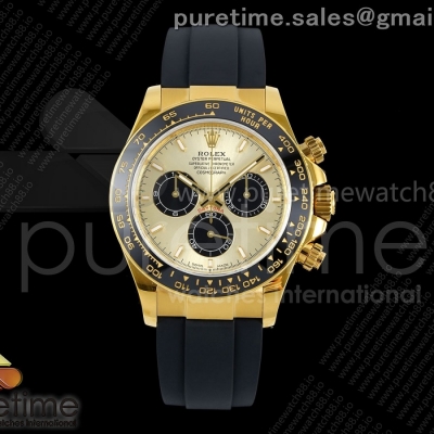 • UFOF 롤렉스 데이토나 옐로우골드 텅스텐(Cu-W) 골드/블랙다이얼 블랙러버스트랩 157g Daytona 126518 UFO 1:1 Best Edition YG/Black Dial on Oysterflex Strap UF4131 (Free Sprung)