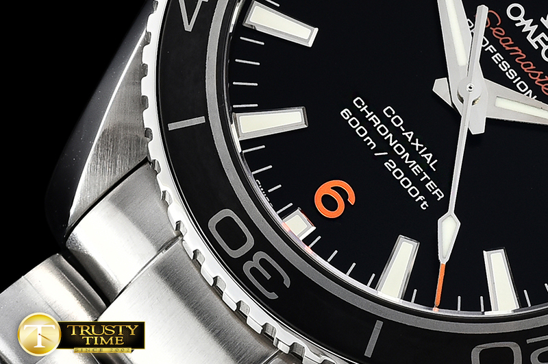 • (특가) VSF 오메가 씨마스터 플래닛오션 45mm 블랙다이얼 블랙러버스트랩 Planet Ocean 45mm Cer SS/SS Black/Org VSF Asia 8500