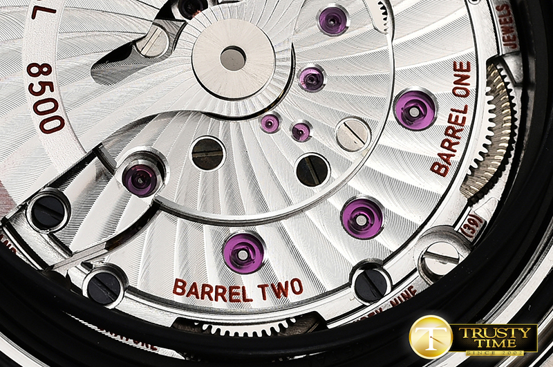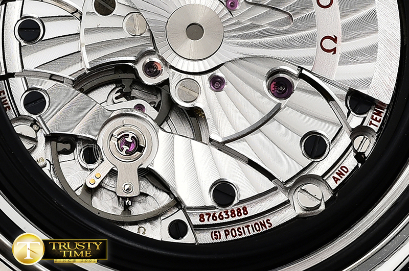 무브먼트Platinum Plated Asia Clone 8500 Automatic Movement 28800bph with Decorated Rotor & Bridges/Plates to look like Genuine Omega Calibre 8500 (And comes with a Black Balance Wheel like genuine 1:1)