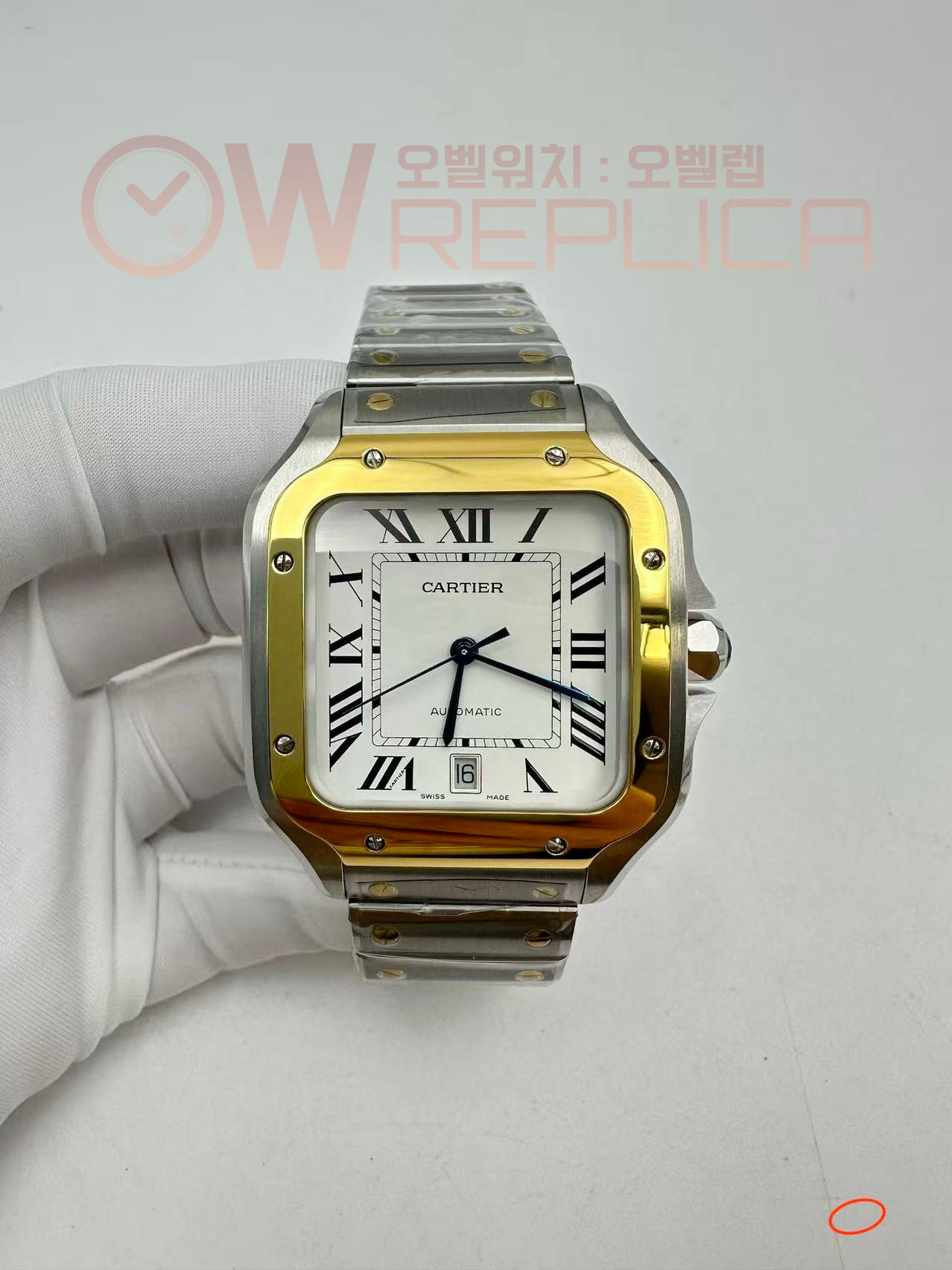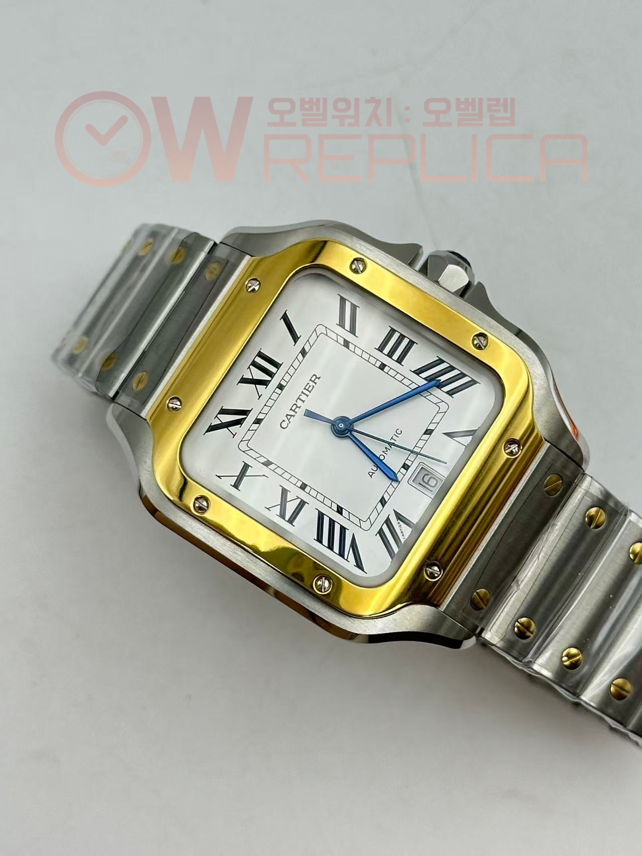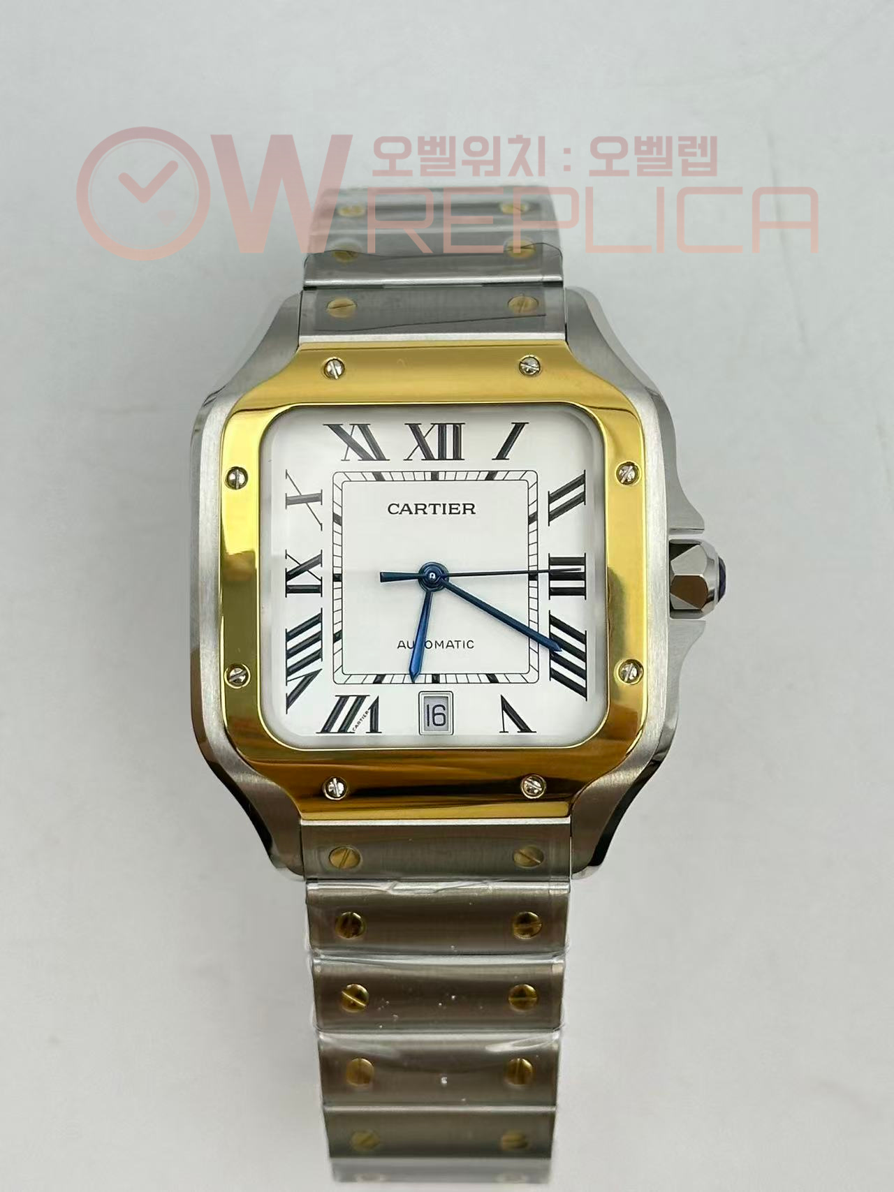 (#국내# 당발) BVF V2 산토스 드 까르띠에 옐로우골드 콤비 라지 40미리 화이트다이얼 스틸브레이슬릿 > 시계