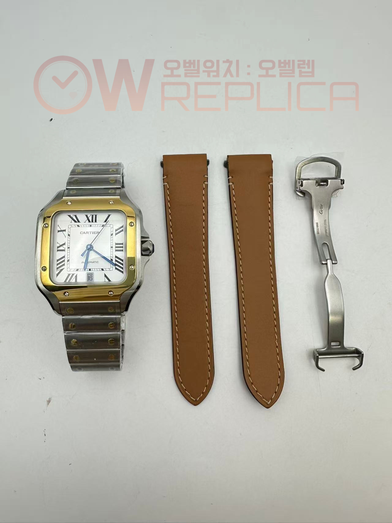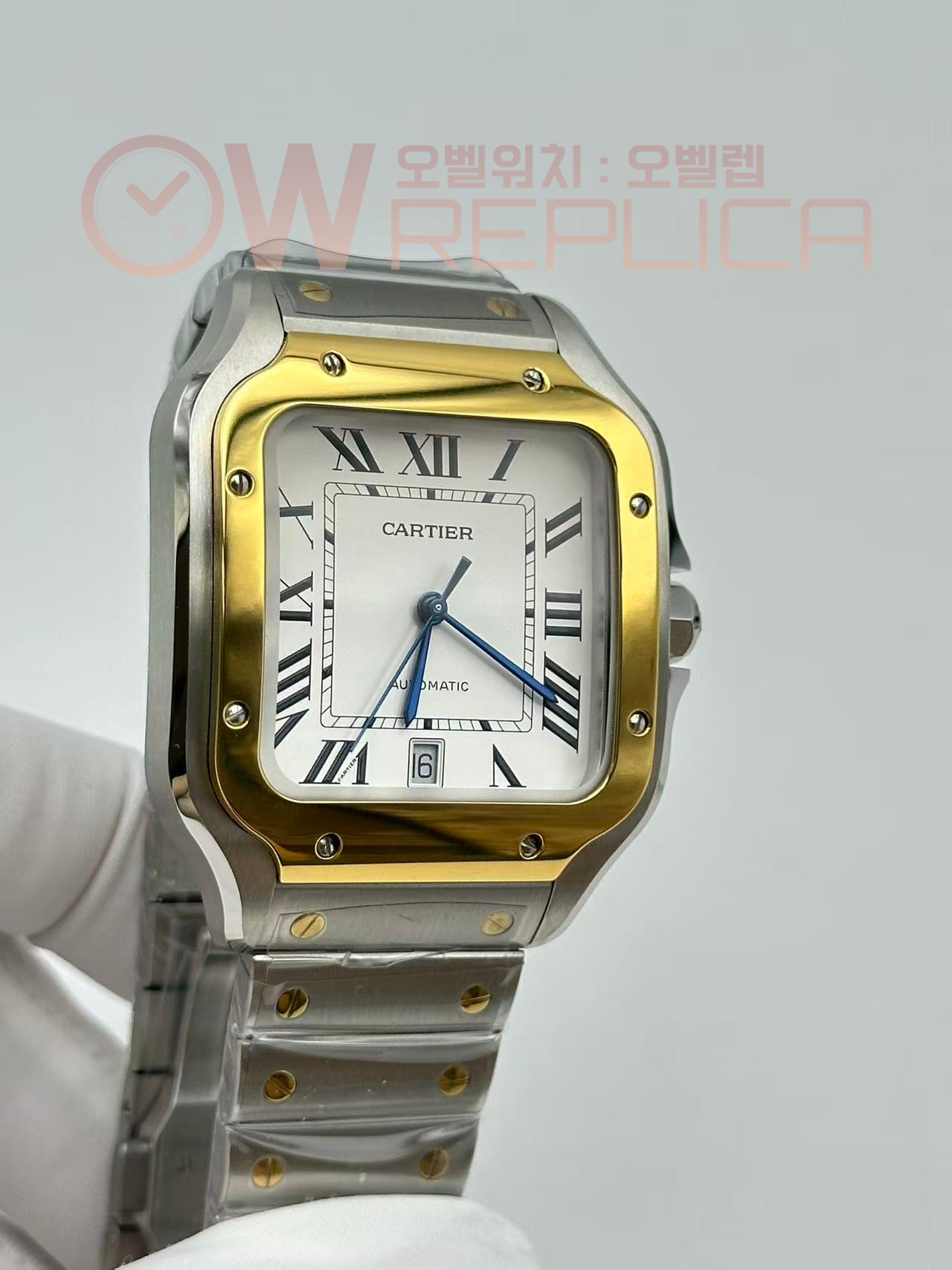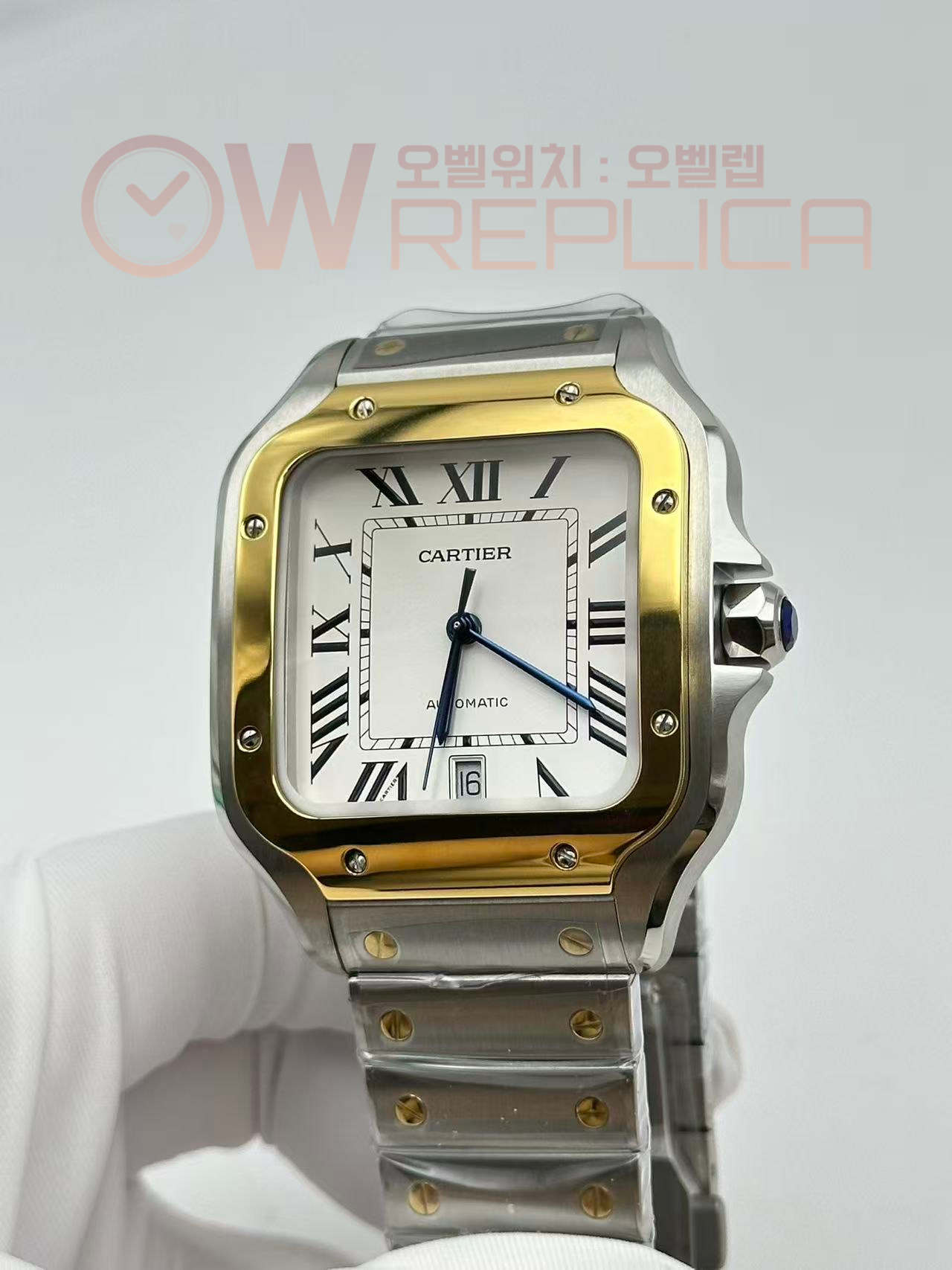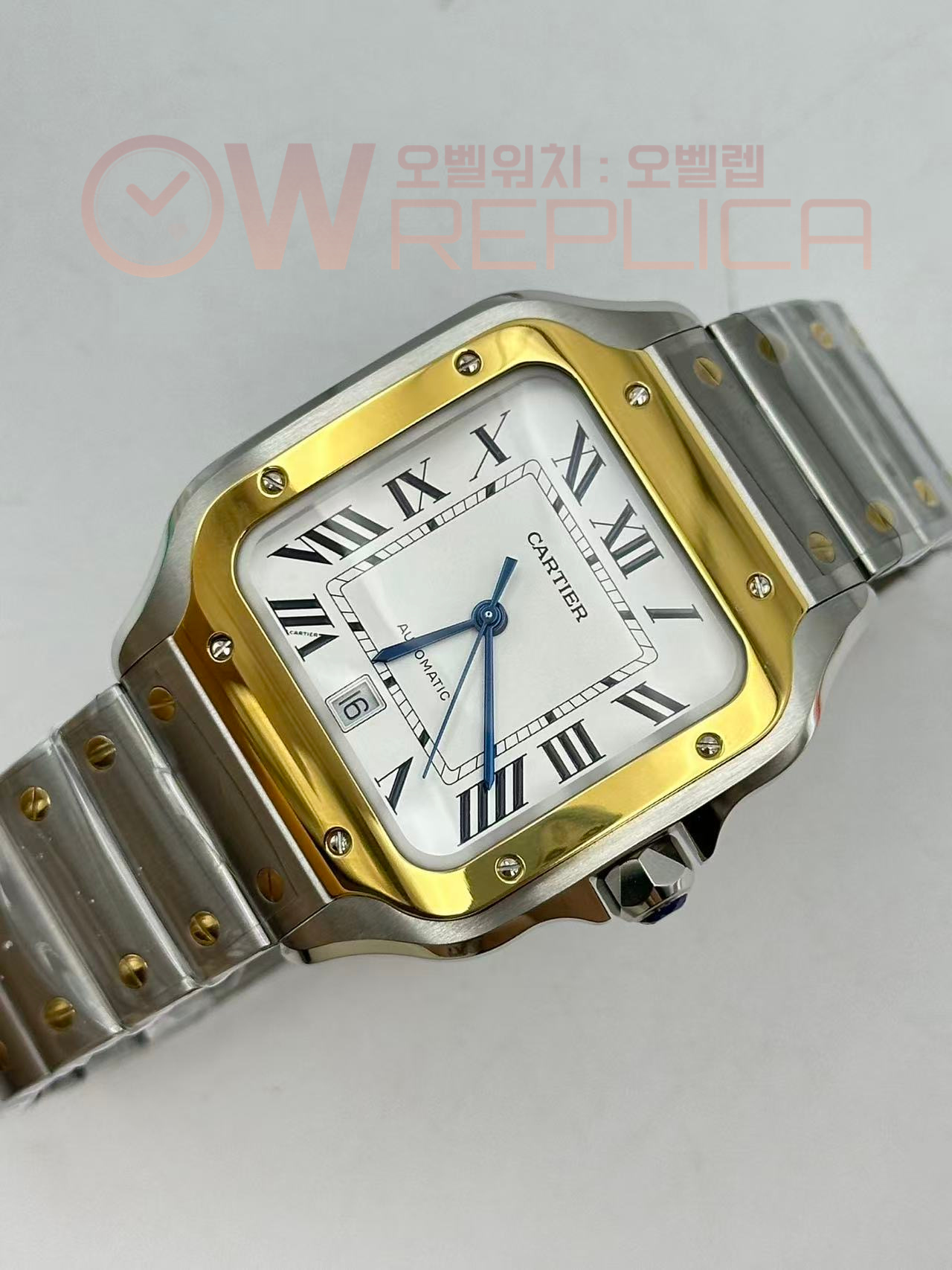 (#국내# 당발) BVF V2 산토스 드 까르띠에 옐로우골드 콤비 라지 40미리 화이트다이얼 스틸브레이슬릿 > 시계
