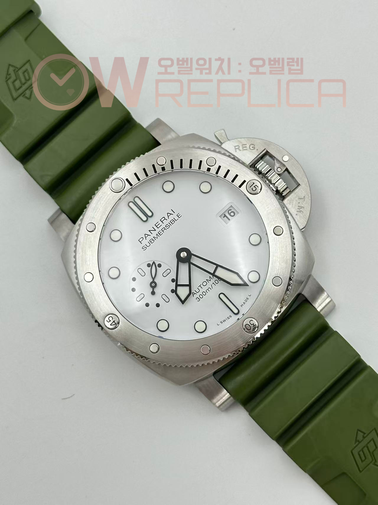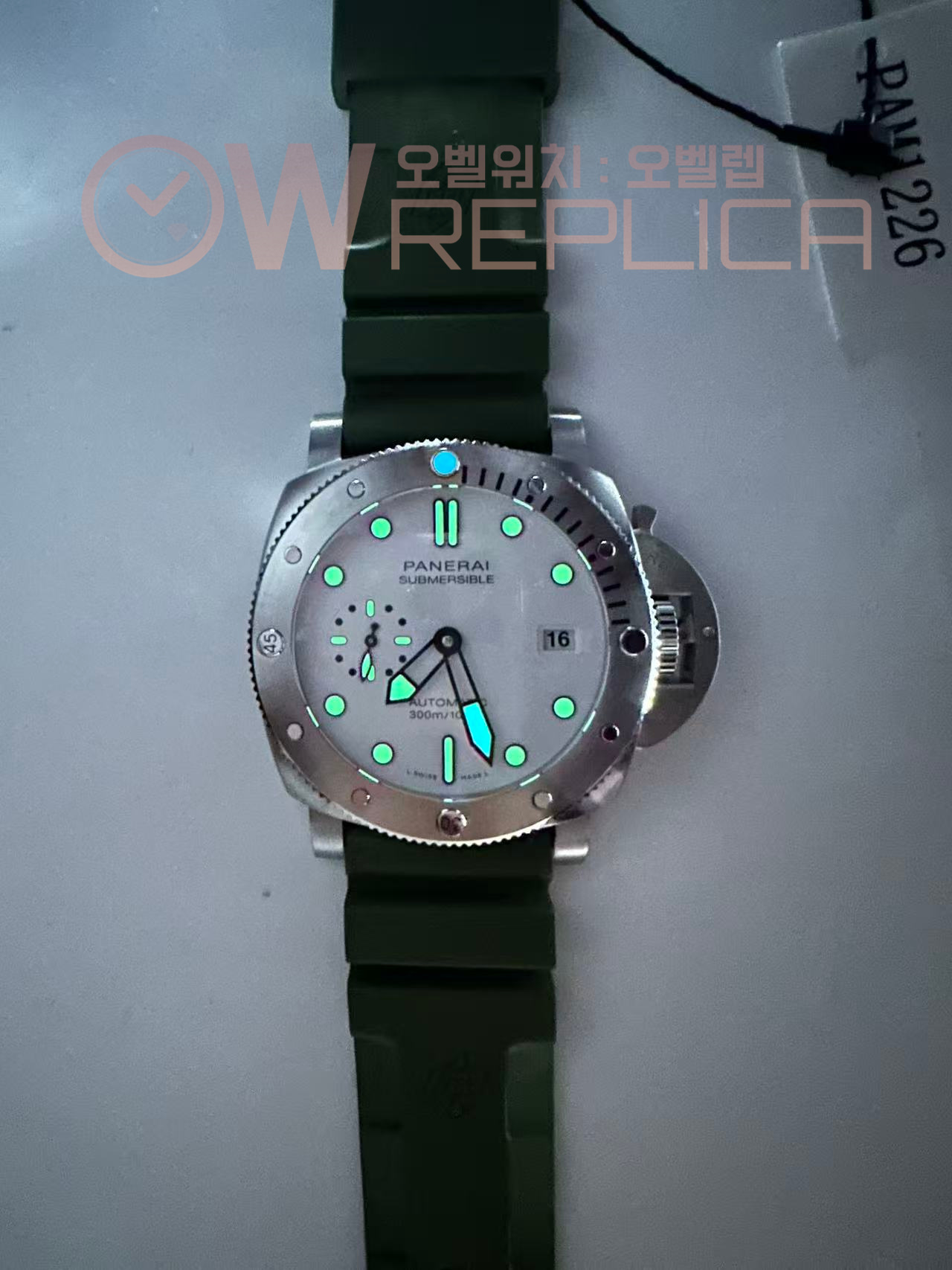 (#국내# 당발) VSF 파네라이 섭머저블 44미리 PAM1226 화이트다이얼 그린러버스트랩 > 시계