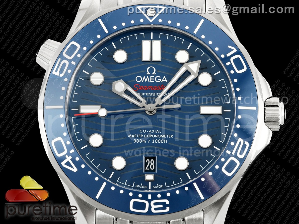 (NEW) VSF V4 오메가 씨마스터 다이버300 블루다이얼 스틸브레이슬릿 Seamaster Diver 300M VSF 1:1 Best Edition Blue Ceramic Blue Dial on SS Bracelet SA8800 Super Clone V4 > 씨마스터(SEAMASTER SERIES)