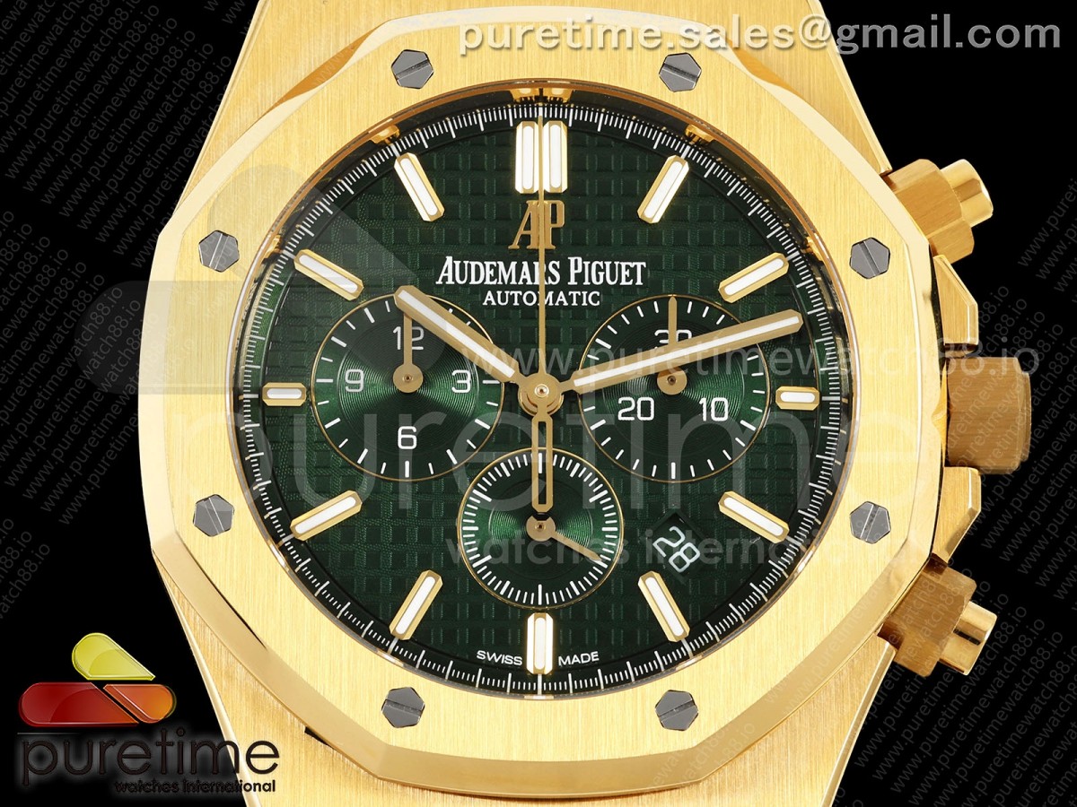 • APSF 오데마피게 로얄오크 크로노 26331 옐로우골드 그린다이얼 스틸브레이슬릿 Royal Oak Chrono 26331 YG APSF 1:1 Best Edition Green Dial on YG Bracelet A2385