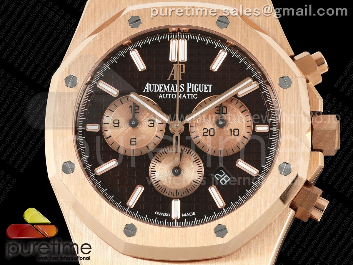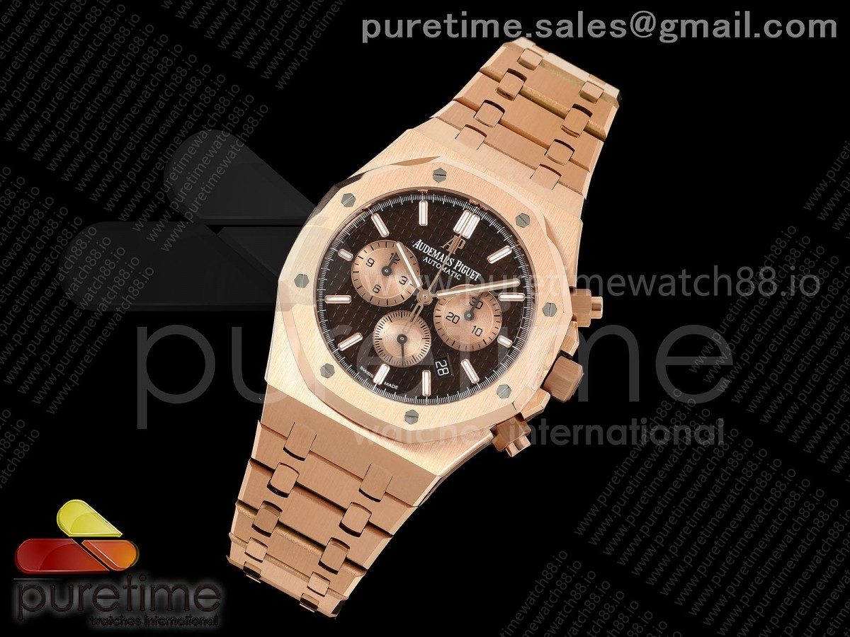 • APSF 오데마피게 로얄오크 크로노 26331 로즈골드 브라운/로골다이얼 스틸브레이슬릿 Royal Oak Chrono 26331 RG APSF 1:1 Best Edition Brown/RG Dial on RG Bracelet A2385RG Bracelet A2385