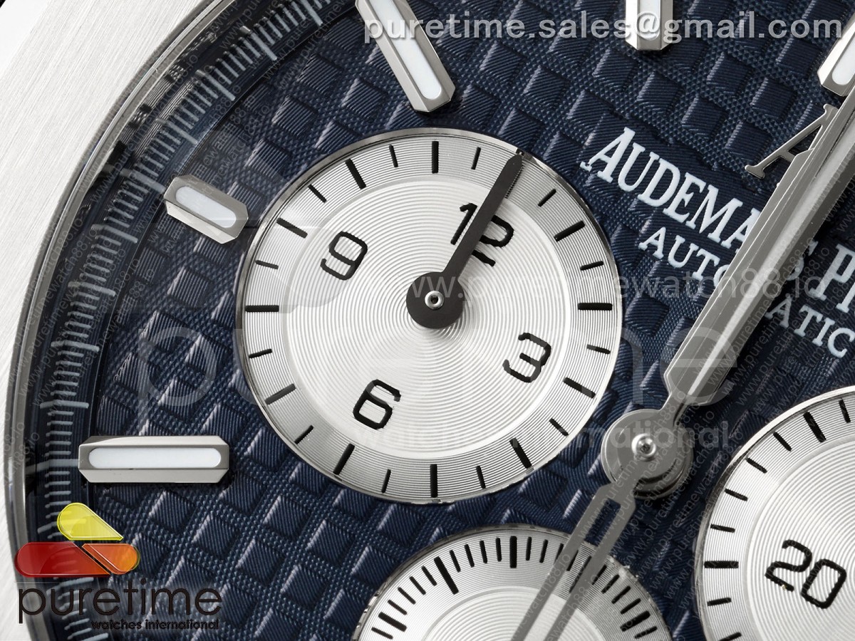 APSF 오데마피게 로얄오크 크로노 26331 블루/화이트다이얼 스틸브레이슬릿 Royal Oak Chrono 26331 SS APSF 1:1 Best Edition Blue/White Dial on SS Bracelet A2385 > 로얄오크크로노(ROYALOAK CHRONOGRAPH)