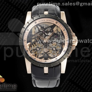 • YSF 로저드뷔 엑스칼리버 더블플라잉 뚜르비옹 로즈골드 스켈레톤다이얼 블랙가죽스트랩 Excalibur Skeleton Double Flying Tourbillon RG/PVD YSF Best Edition on Black Leather Strap