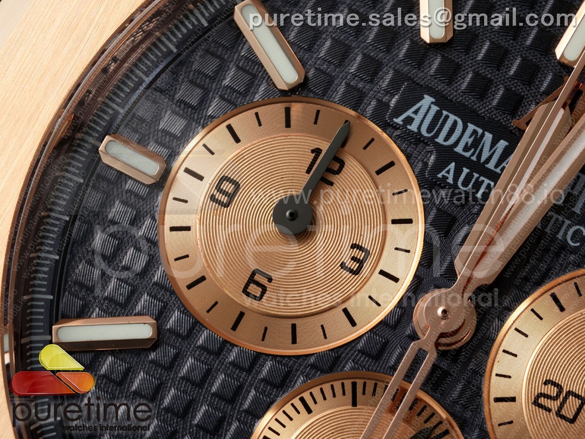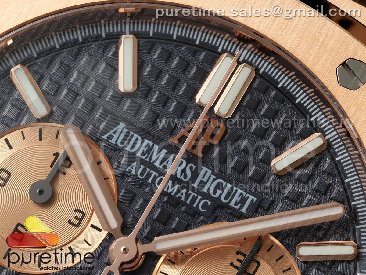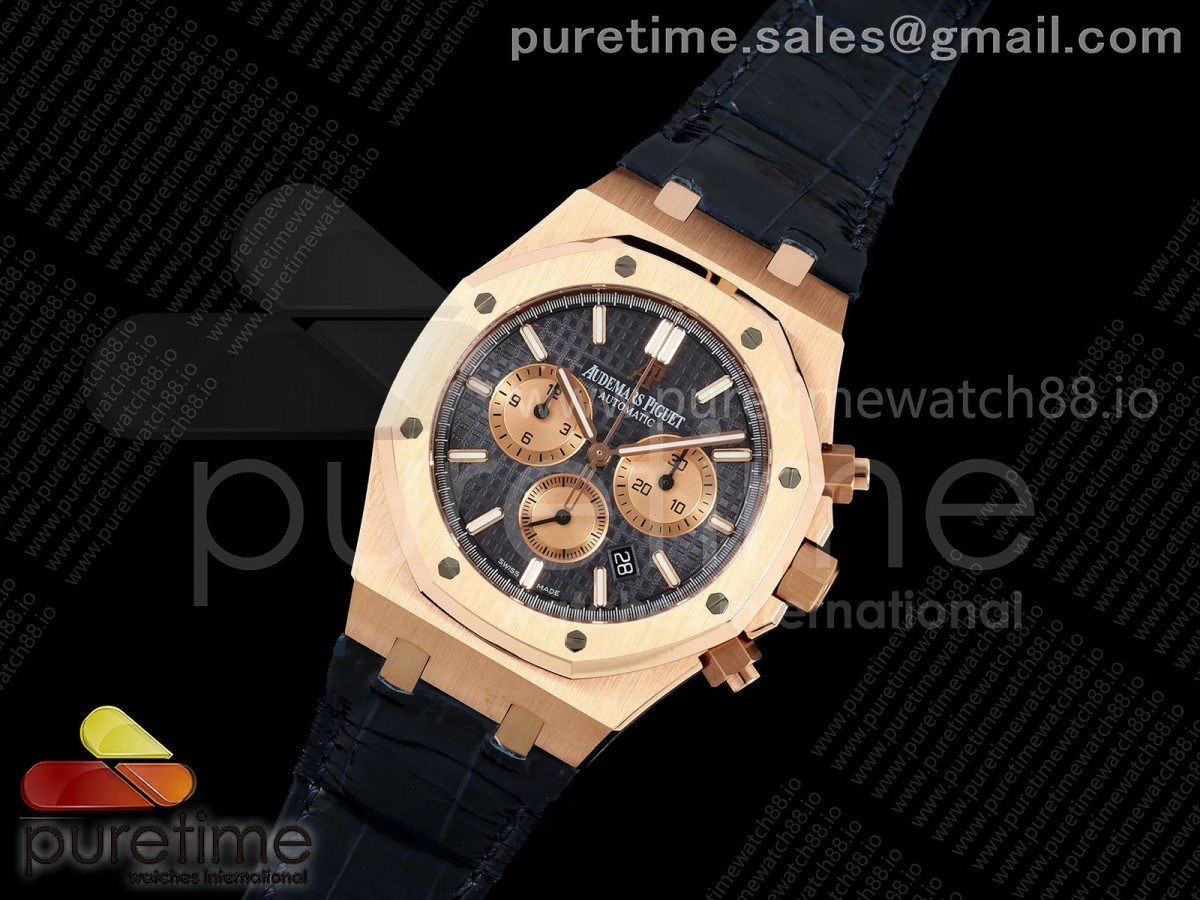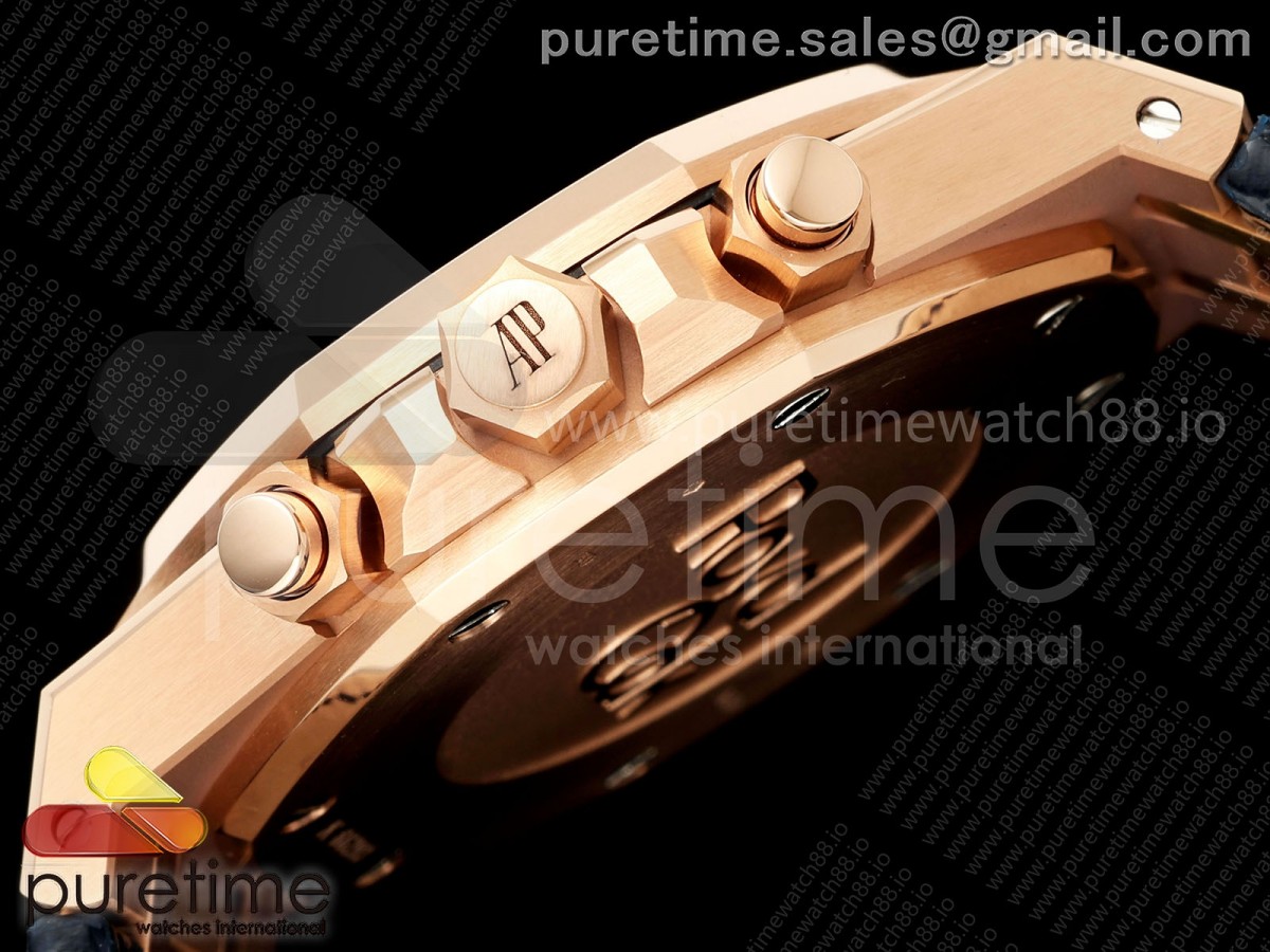 • APWF 오데마피게 로얄오크 크로노 26331 로즈골드 블루/로골다이얼 블루가죽스트랩 Royal Oak Chrono 26331 RG APWF 1:1 Best Edition Blue/RG Dial on Brown Leather Strap A2385