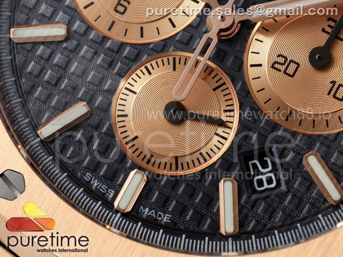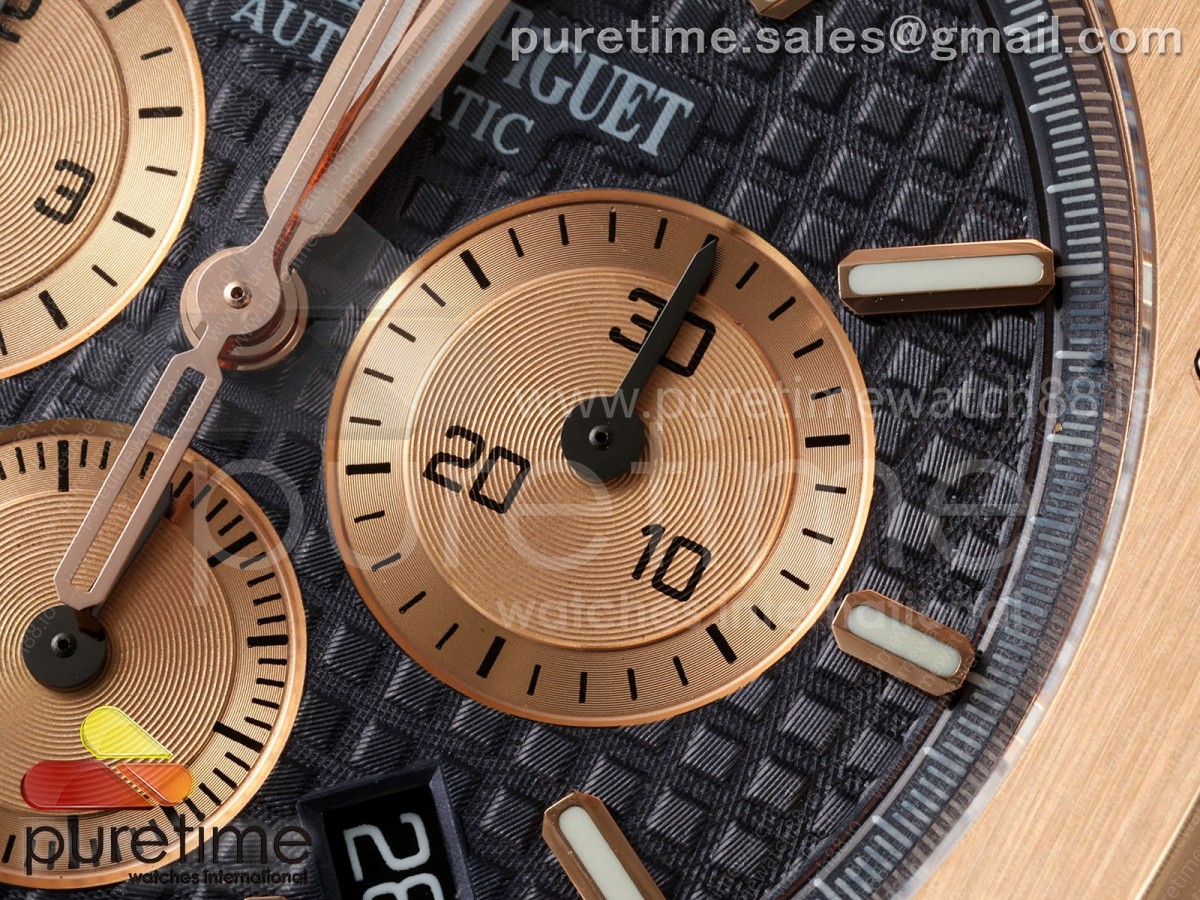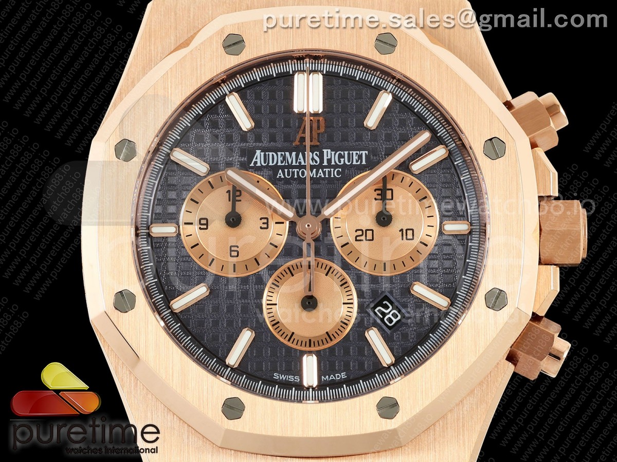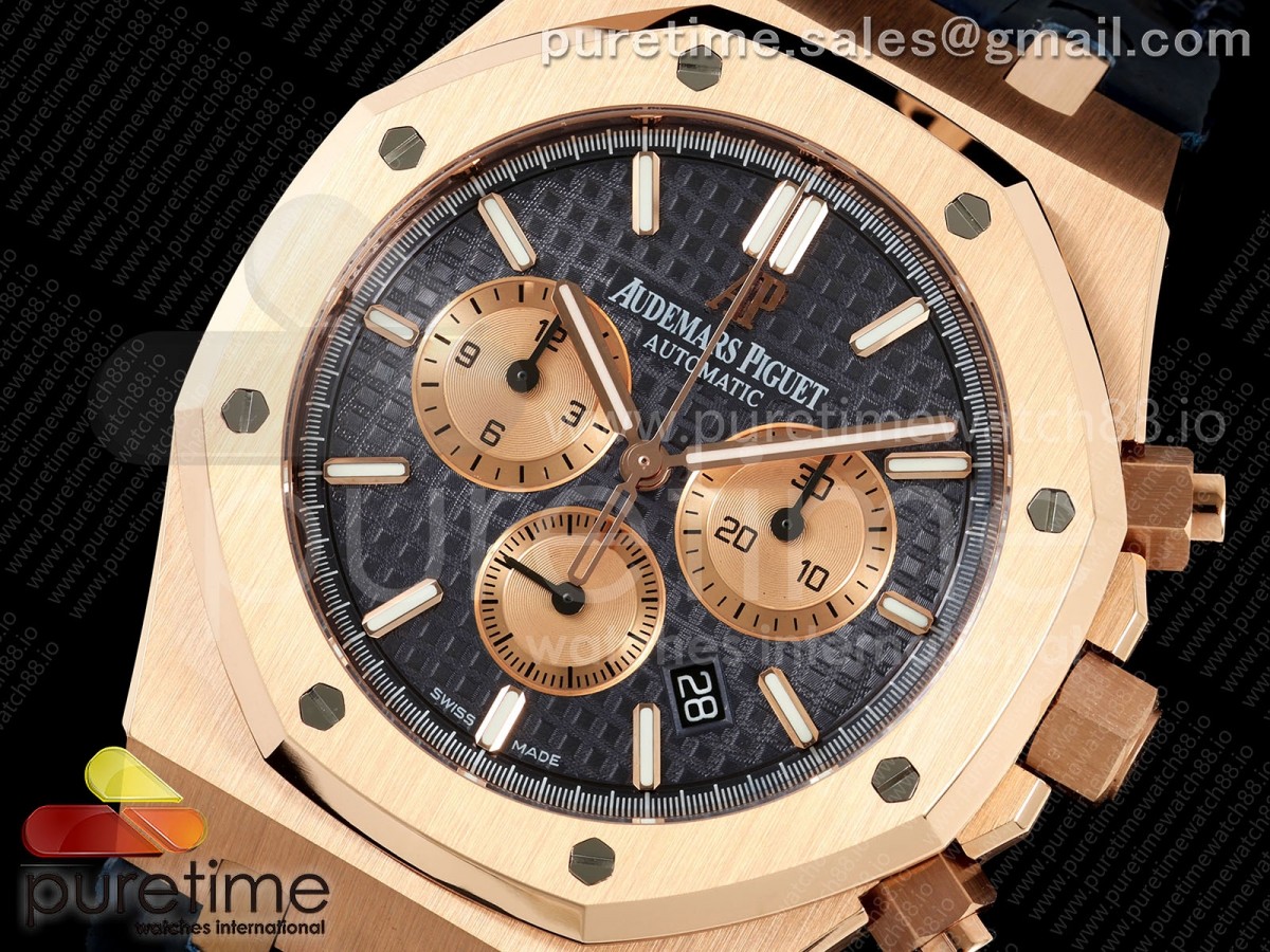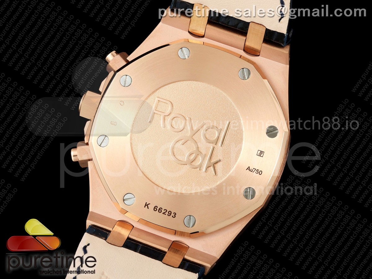 • APWF 오데마피게 로얄오크 크로노 26331 로즈골드 블루/로골다이얼 블루가죽스트랩 Royal Oak Chrono 26331 RG APWF 1:1 Best Edition Blue/RG Dial on Brown Leather Strap A2385