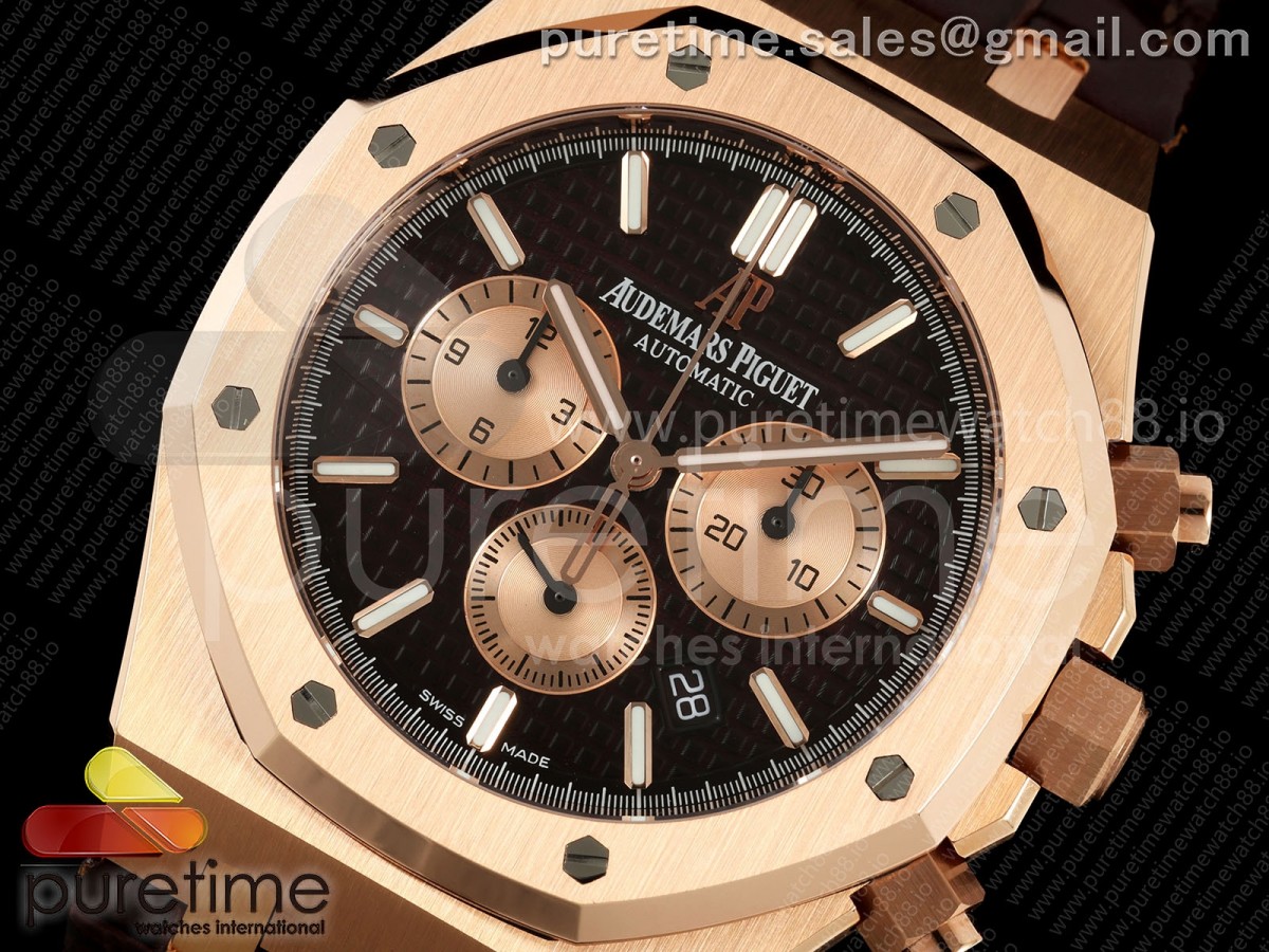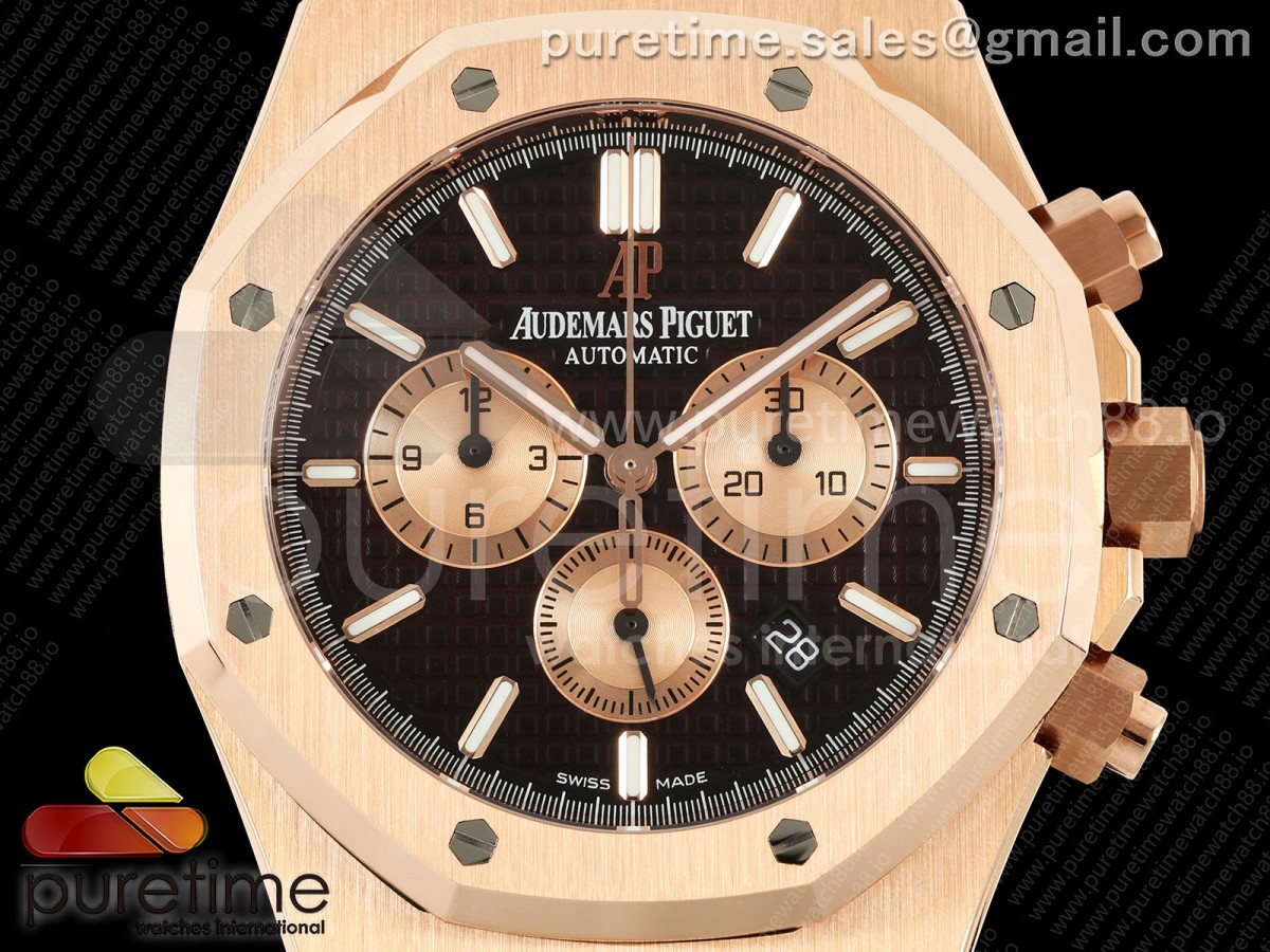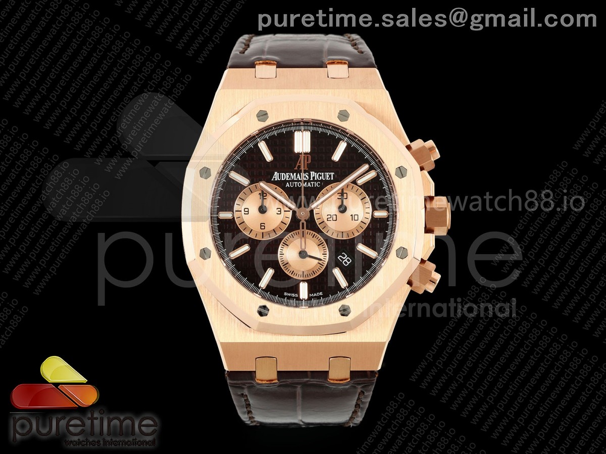 • APWF 오데마피게 로얄오크 크로노 26331 로즈골드 브라운/로골다이얼 브라운가죽스트랩 Royal Oak Chrono 26331 RG APWF 1:1 Best Edition Brown/RG Dial on Brown Leather Strap A2385