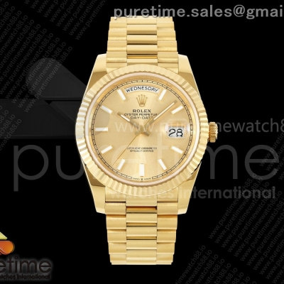 RCF 롤렉스 데이데이트40 옐로우골드 텅스텐(Cu-W) 골드다이얼 스틸브레이슬릿 210g Day Date 40 YG RCF 1:1 Best Edition YG Stick Dial on President Bracelet VR3255